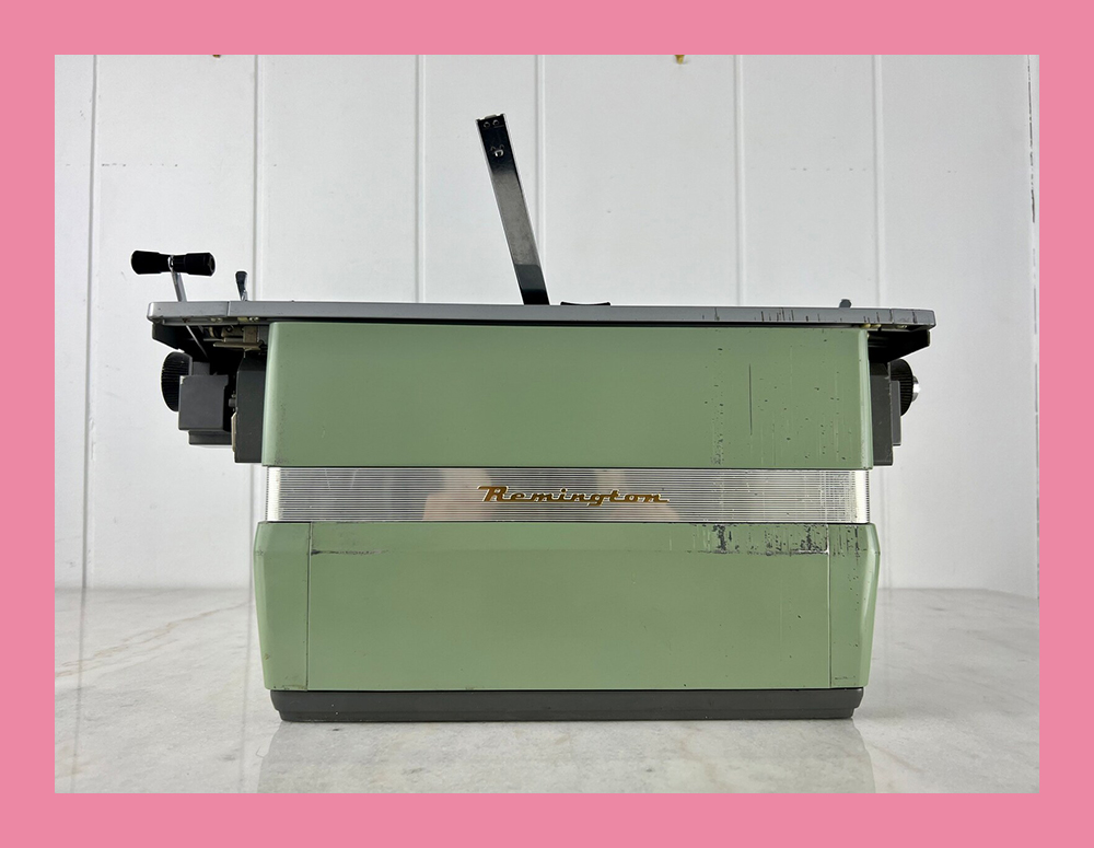 A bit further ahead in the timeline, and Sarah Jane gets to work in Scotland, thanks to this Remington international portable typewriter from the 1960’s. Mint Green. Hmmmmm, nice.