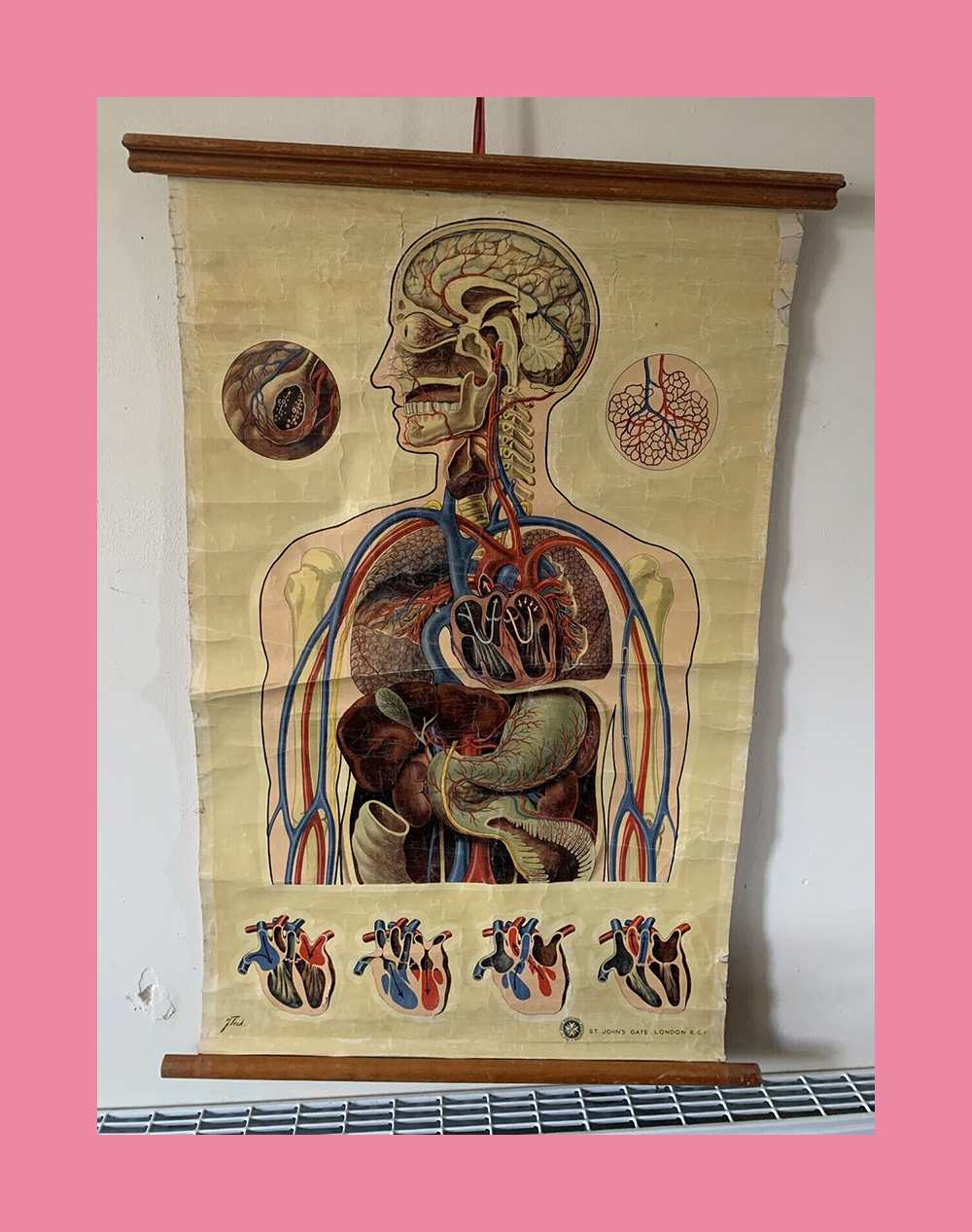 St Johns Ambulance Medical Poster Blood flow system, by J Teck, probably 1940s/early 1950s – Ham-fisted bun vendor not pictured..