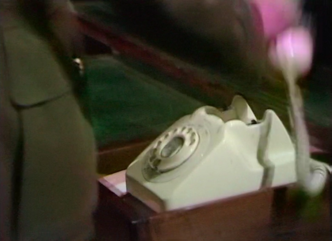 It features frequently in Doctor Who, particularly during the UNIT era, where it conveys all sorts of orders from the ministry which result in one of the Brigadier’s many grimaces. In ‘Inferno’, it plays a key part in the drama, with technician Bromley having a civilised conversation, before all hell breaks loose, with Slocum going crazy, Bromley and Wyatt looking ominously distant, and the Doctor dealing with the matter himself, all with the incessant ringing in the foreground. Even off-screen, the phone played a part in a one-off contretemps between Pertwee and director Douglas Camfield about how the Doctor should appear in shot with it!