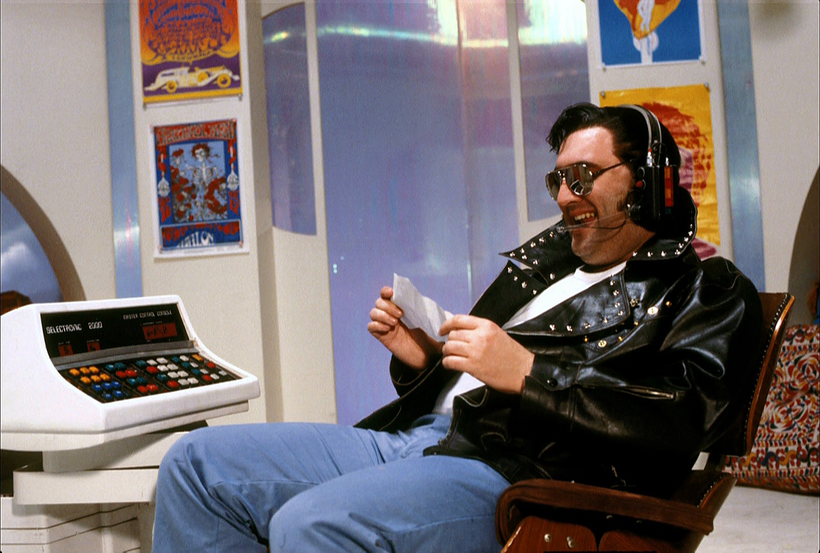 Meanwhile, back at the cafe, Ace has a go at selecting a disc from this 403 Wall Phonograph by ‘Rock-Ola’ (USA, 1962). This model allows 50 records, and 100 selections. Interestingly, the name ‘Rock-Ola’ wasn’t simply a matter of style, it was the name of the company’s founder – David Cullen Rockola.
