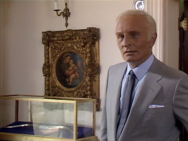 Moving on to 1988, and Silver Nemesis features this depiction of Madonna and Child. The provenance of this particular painting can’t be confirmed, but it would appear to be from the late 19th century, and based on the famous work by Raphael, painted approximately 1513–1514.