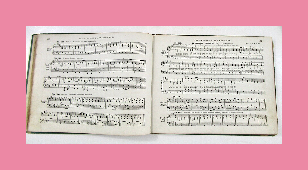 One listing notes the following; Songster Description: George F. Root, School for the Melodeon, Harmonium, and Cabinet Organ. Boston: Oliver Ditson, 1863, 144 pages. 9 ¼” x 11 ¾”. “Containing lessons, studies and scales; songs, duets, trios, and quartets; voluntarie, interludes and recreative pieces; for the parlor and choir: carefully prepared with reference to the advancement of learners, both in the technical ability and taste as well as the true development of the powers and beauties of these instruments.”