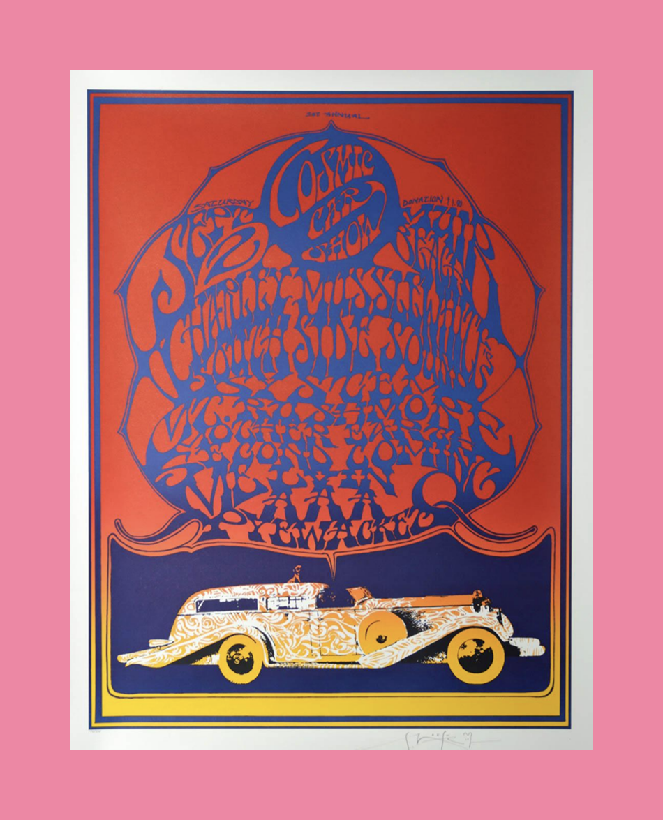 And two posters designed by Stanley Mouse. First up is ‘Cosmic Car Show’ dating from 1967. The second is a collaboration with Alton Kelley, advertising Grateful Dead & Oxford Circle at the Avalon Ballroom 16-17th September 1966.