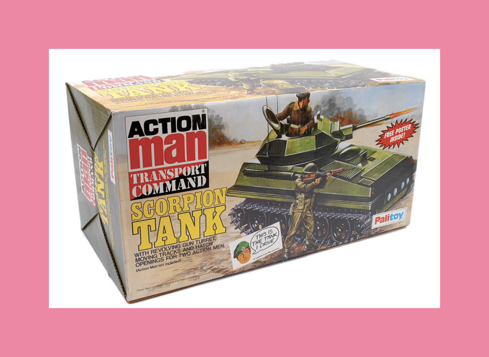There is this famous publicity photograph of a War Machine being confronted by the lethal forces of dog, mother and baby. The pram in question has been found, but the designer cannot be identified at this point in time.