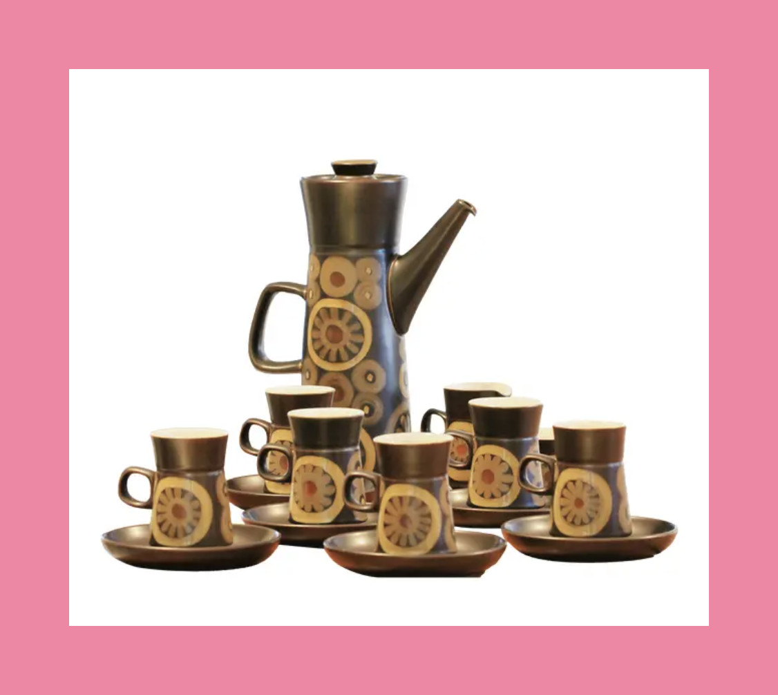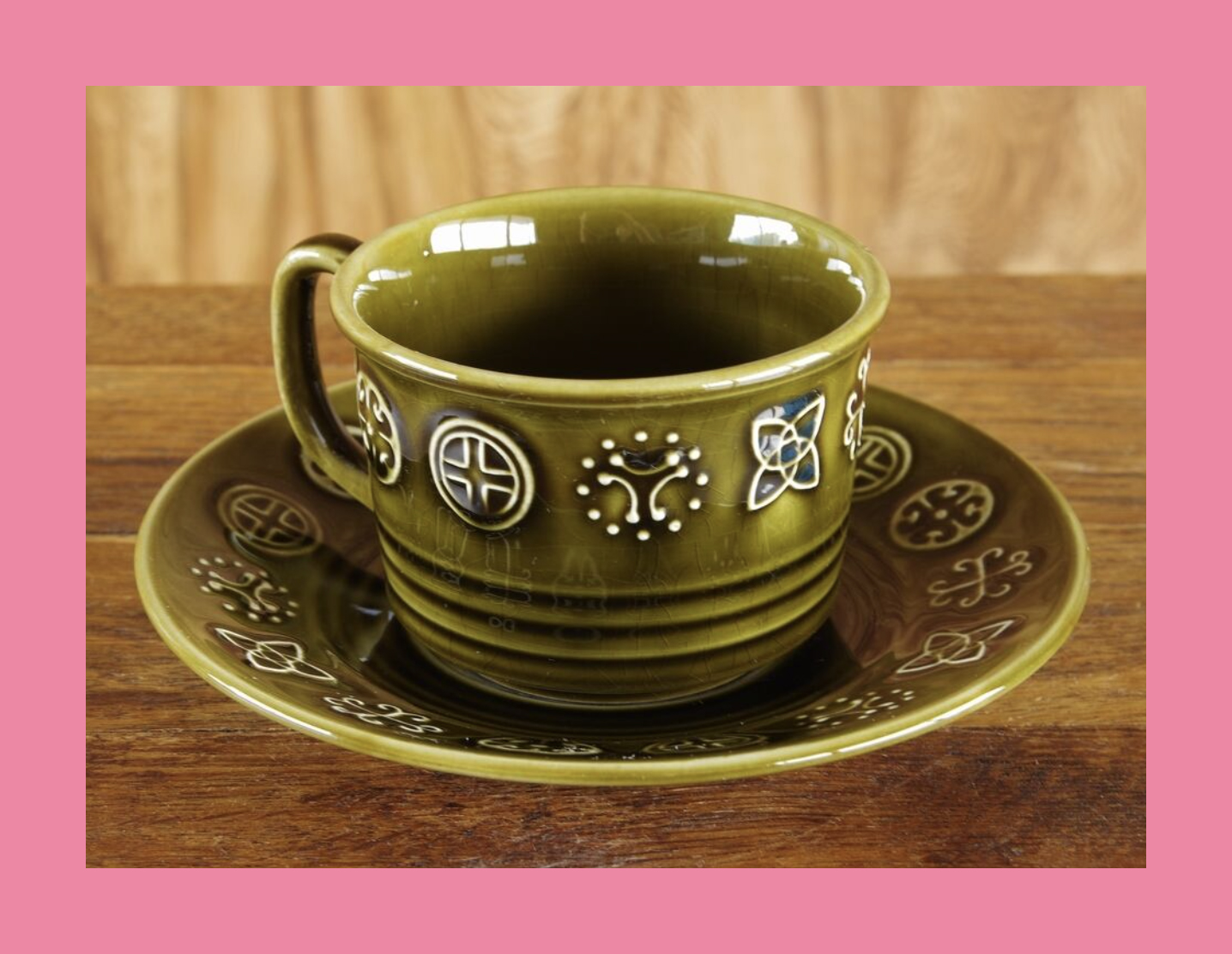 Finally, for coffee, we have this Arabesque cup, by the Denby Pottery Company. Designed following a trip to Russia by Gill Pemberton, UK, 1963.