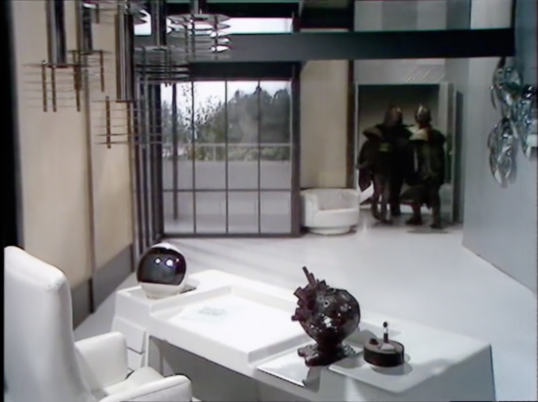 Season 15 might have a reputation as the season where the money ran out, but it’s perhaps the best season for high-quality furniture. And that’s not all. The lighting is exceptional. Take these lamps on Bi-al (and also featured in many other stories). This is a Pileo floor lamp by Gae Aulenti, circa 1972.