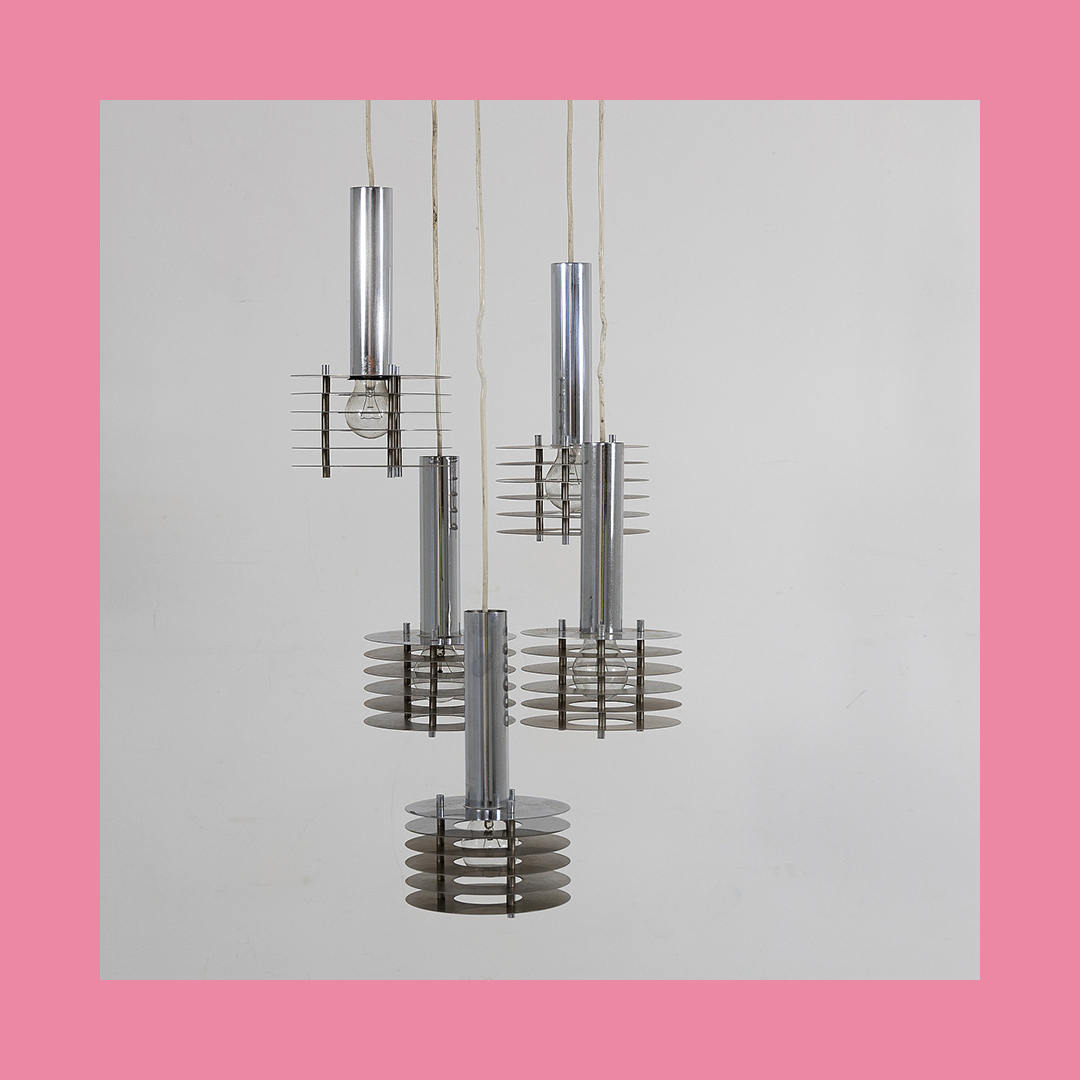 ‘Frontier in Space’ (BBC, 1973) Maison Charles ‘Orgue’ lamp. Jacques Charles France, 1965 Stainless steel.