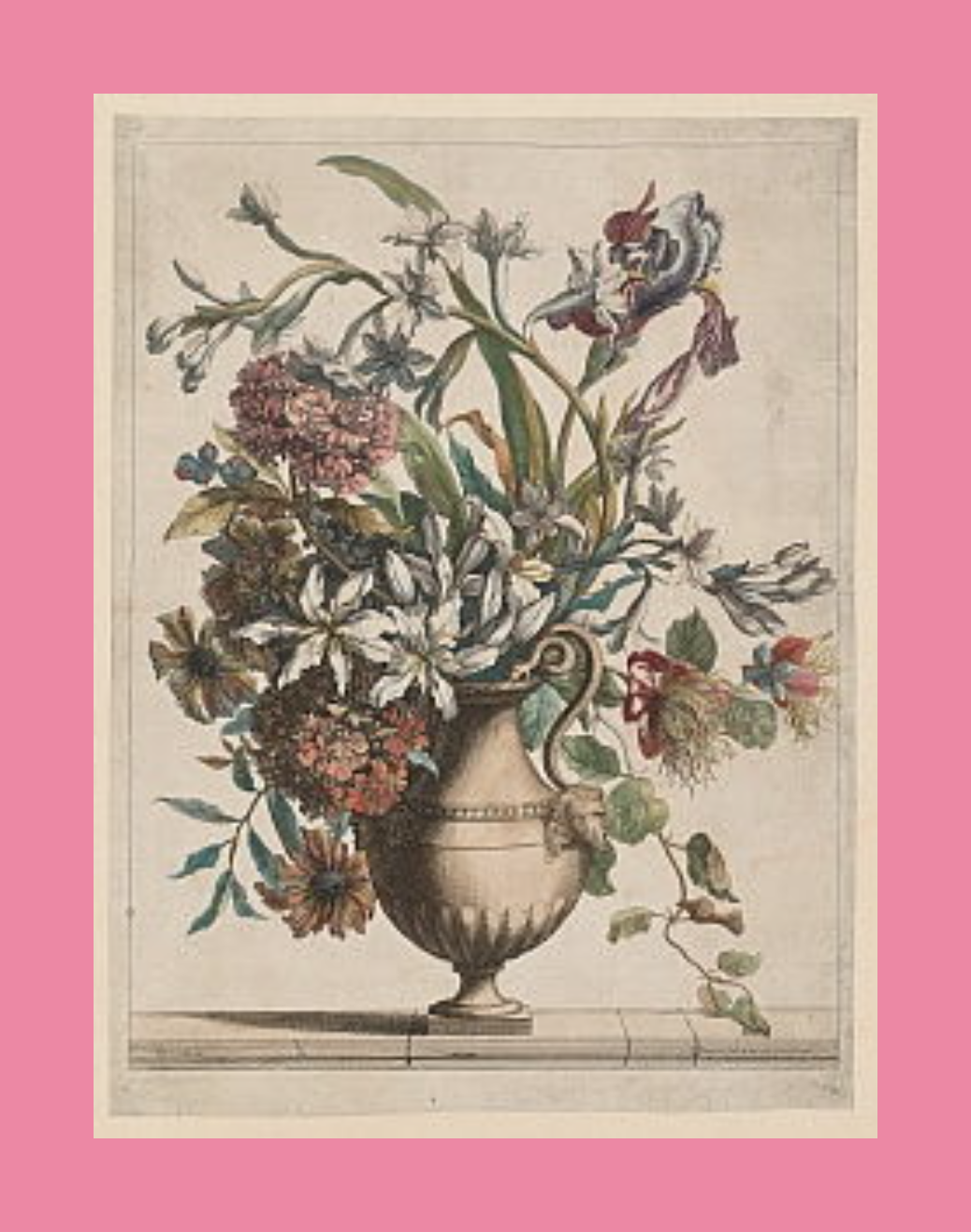 Gardeners’ World’s now. Let’s start with the residence of Harrison Chase. Liure de Toutes Sortes de fleurs daprès nature: Vase of Flowers. by Jean Baptiste Monnoyer ca.1670–80 – although the reproduction is flipped horizontally.