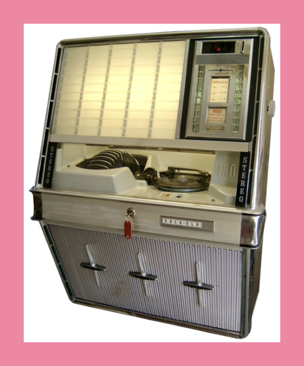 While we’re at it. Here’s another jukebox, featured in Tranquil Repose. The DJ uses a model ‘A’ Juke box, by AMI Incorporated. USA, 1946-47. It offers 20 records and 40 selections. Heeeaaavvvyyyy.