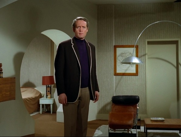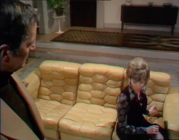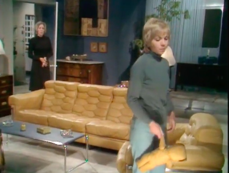 However, it is the modular sofa that is the most exciting element. Doctor Who and Blake’s 7 fans will be more than familiar with the Chadwick sofa, featuring everywhere from a Teal-Star space cruiser to a Parisian art gallery housing the TARDIS. Yet this television play features the Utsep system, designed by Danish architect Jørn Utzon. This was based on the concept of ‘additive architecture’ – the idea that new shapes and forms emerge with new elements added to the mix.