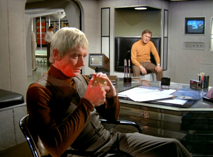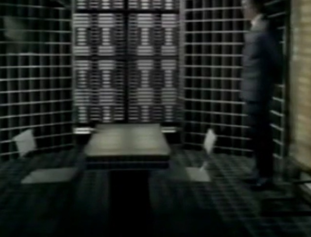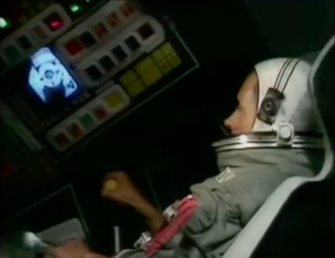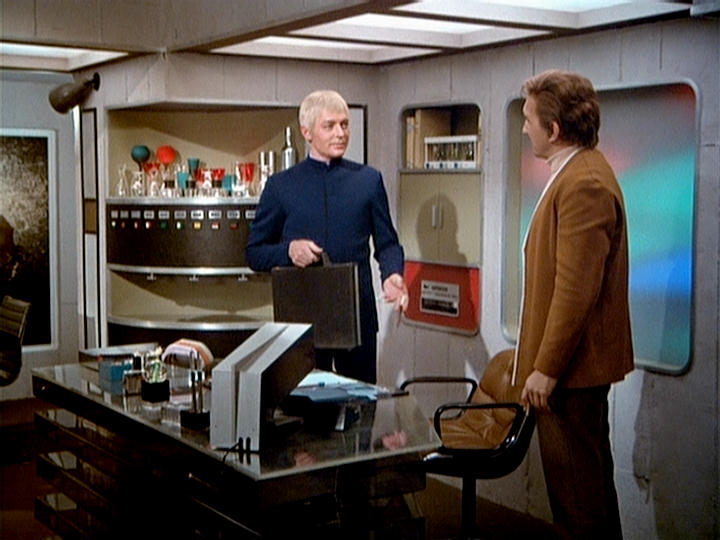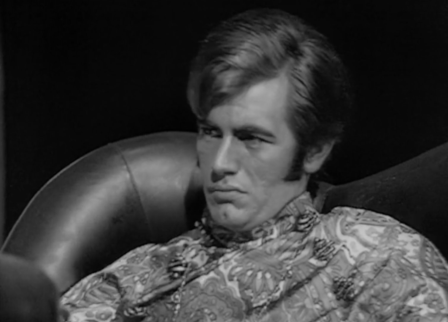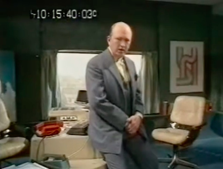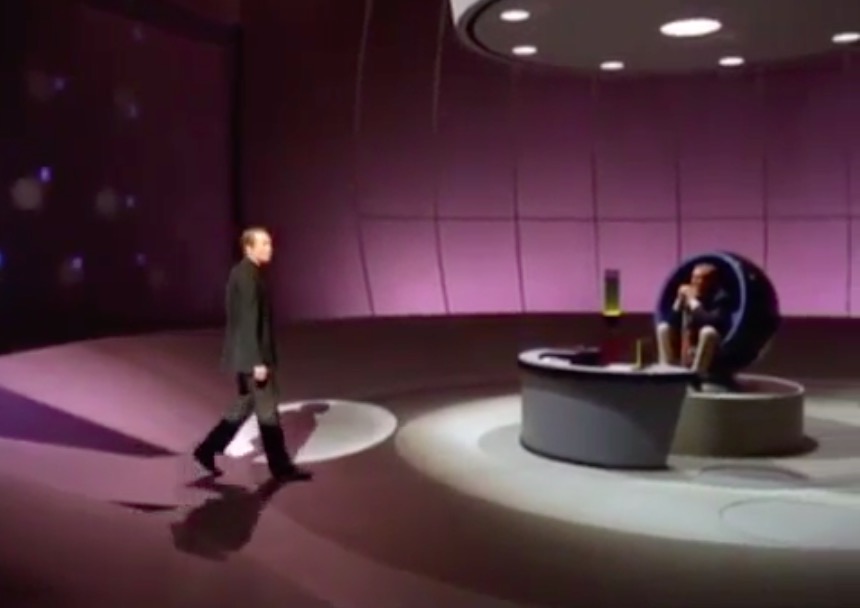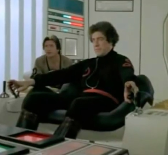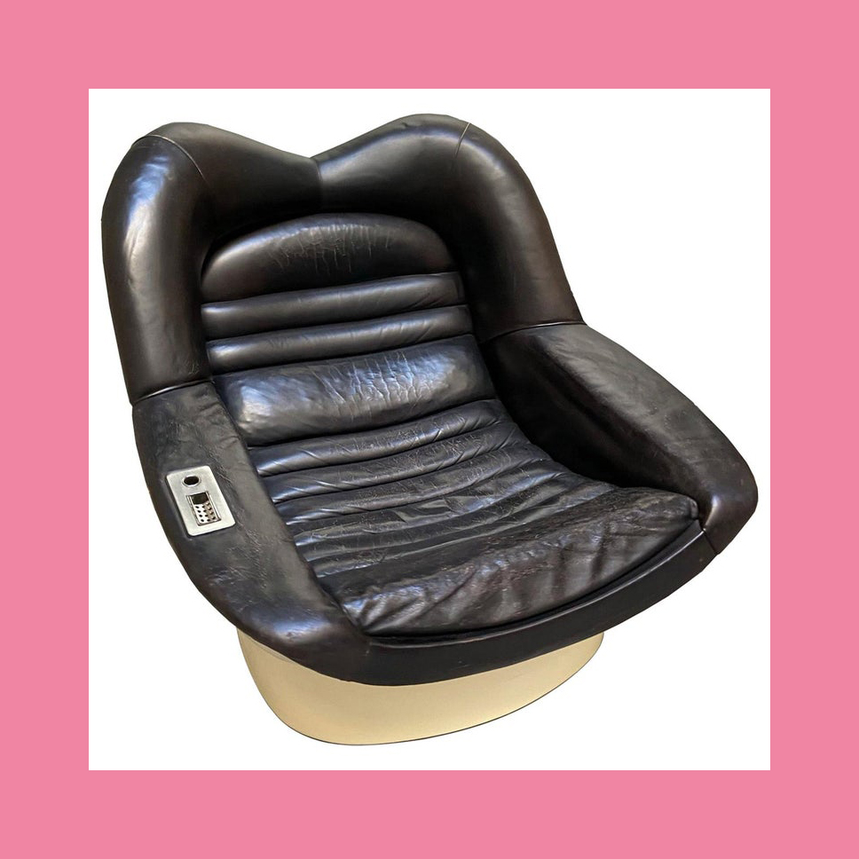 This leads neatly to the second reason, the distinctive visual appearance. The upholstered leather and padded headrest appear to work in unison with the rest of the set design, with televisions fitted into a desk that is equally padded in black leather. It’s one of the few set designs of the era where the furniture is compatible with the rest of the set.