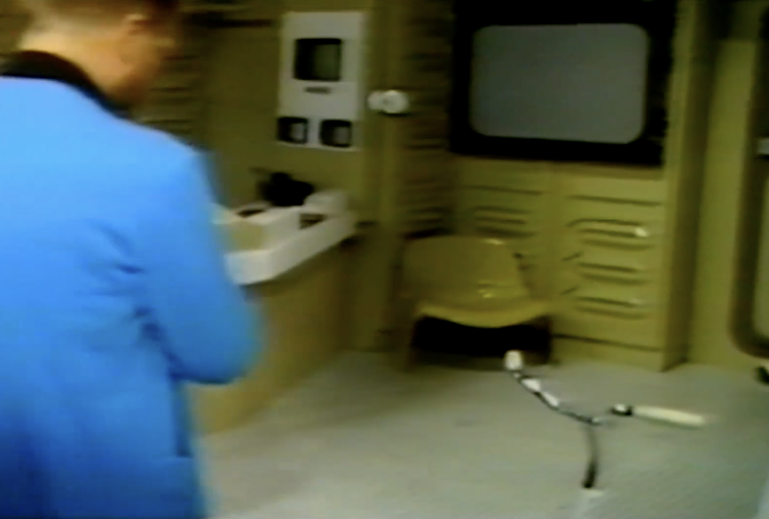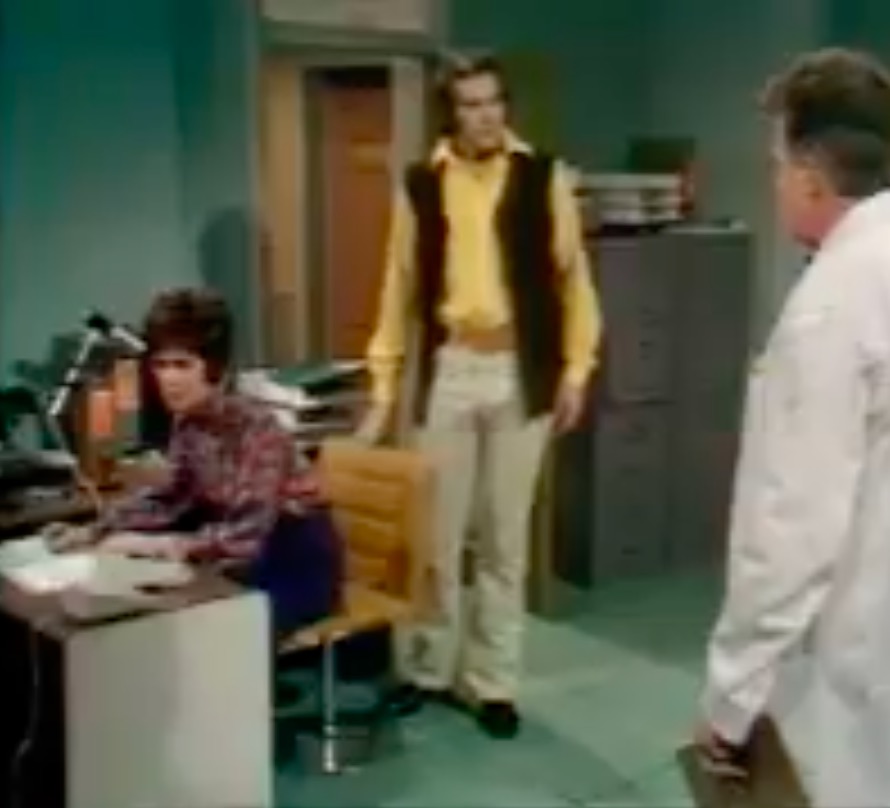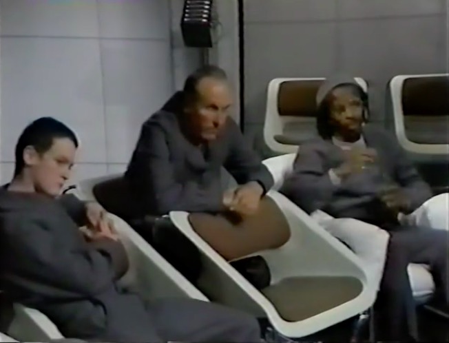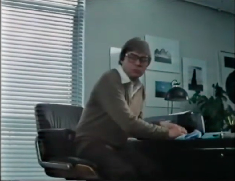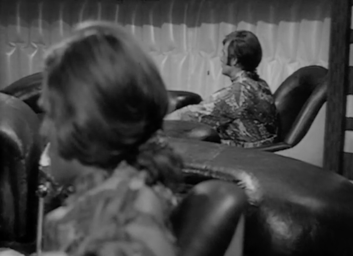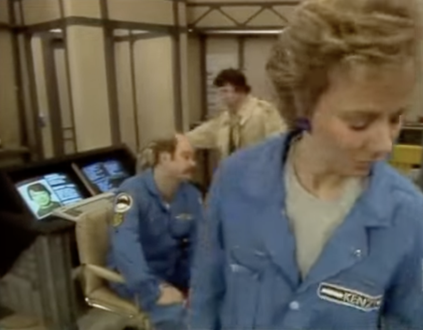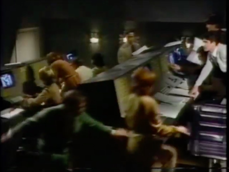 This leads neatly to the second reason, the distinctive visual appearance. The upholstered leather and padded headrest appear to work in unison with the rest of the set design, with televisions fitted into a desk that is equally padded in black leather. It’s one of the few set designs of the era where the furniture is compatible with the rest of the set.