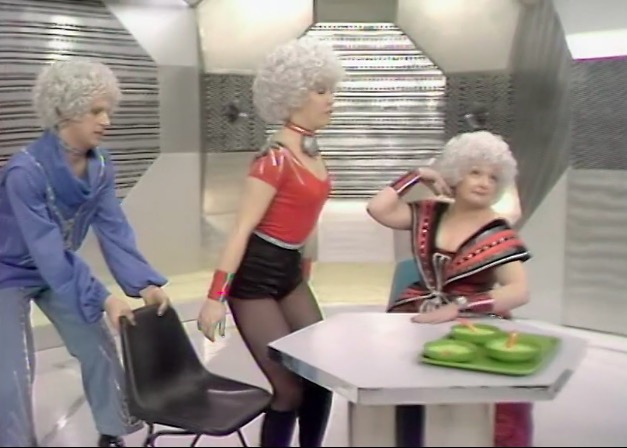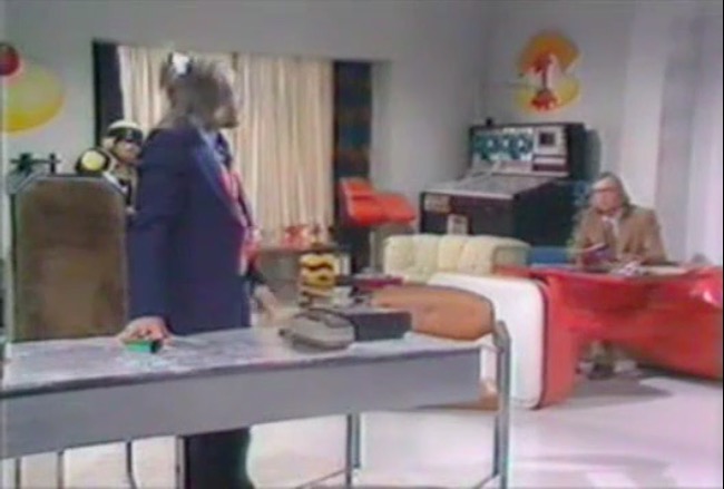 Of course, there are some highlights, usually found in the most unlikely of places. Children’s series Galloping Galaxies! might have Kenneth Williams as a selling point, but the use of furniture is pretty much a step ahead. The use of colourful Italian Dafne stools by Gastone Rinaldi, screams postmodernist 1980s.
