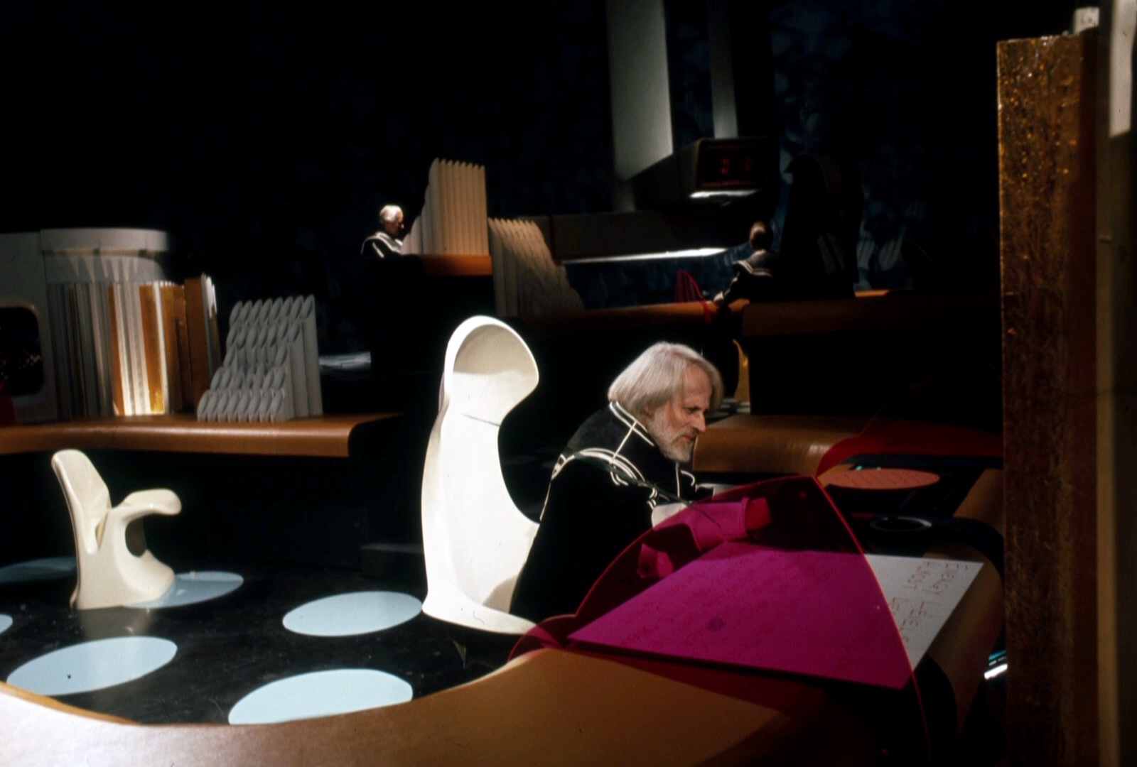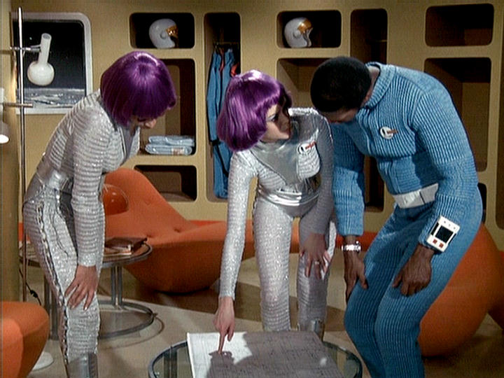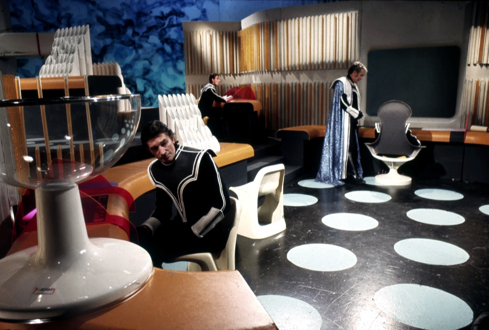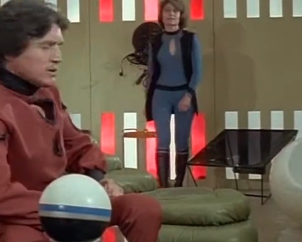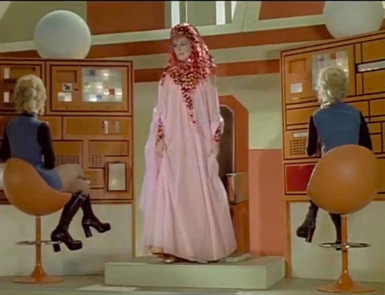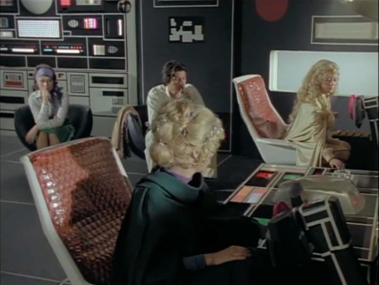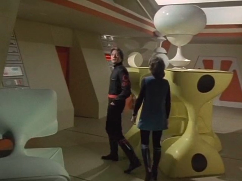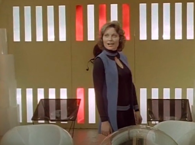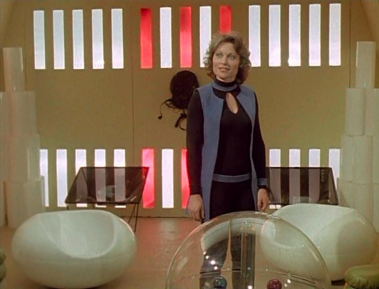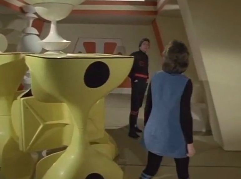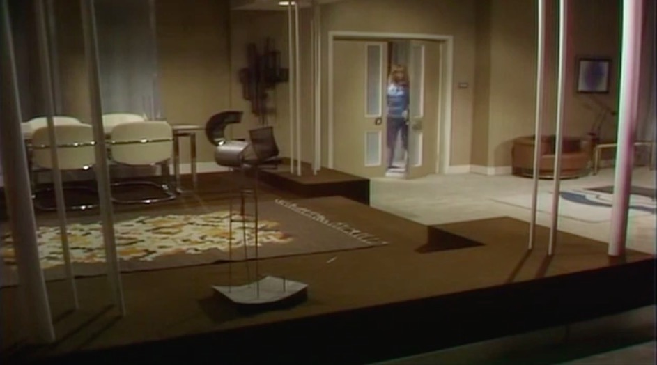 This series made good use of presumably custom-built mouldings, using a number of space-age designs that – to the best of my knowledge – first appeared in Doctor Who as part of the impressive setting occupied by the Time Lords in The Three Doctors (BBC, 1972-3).