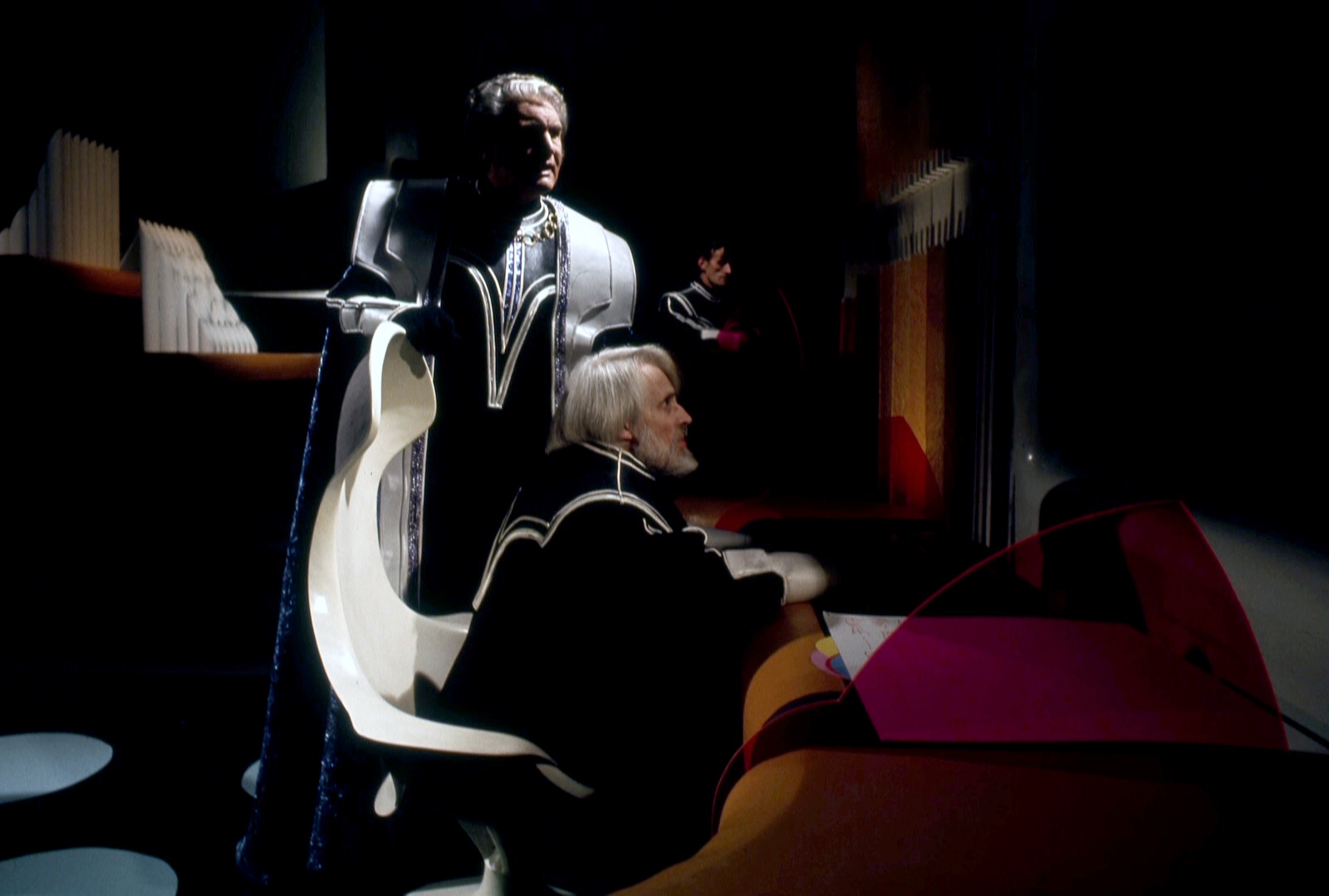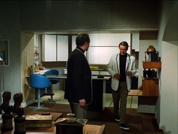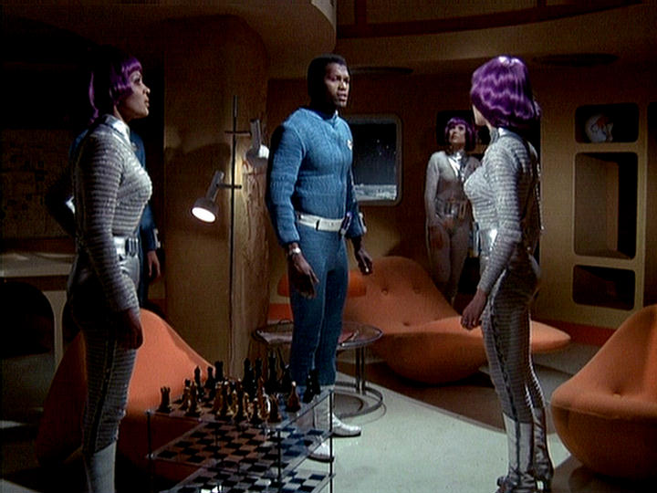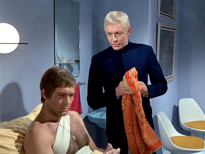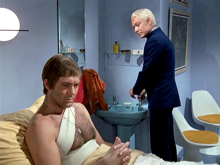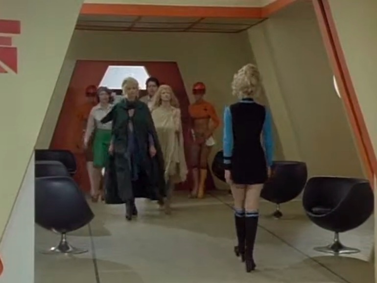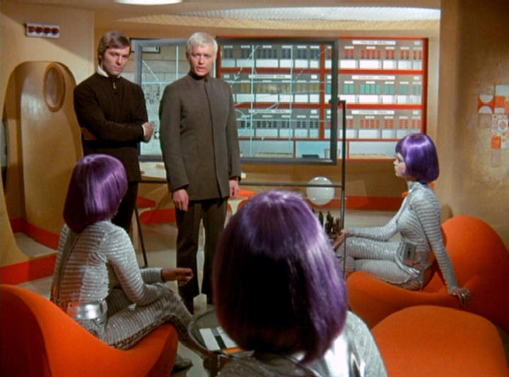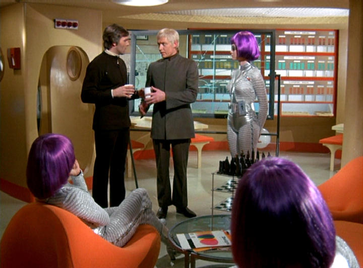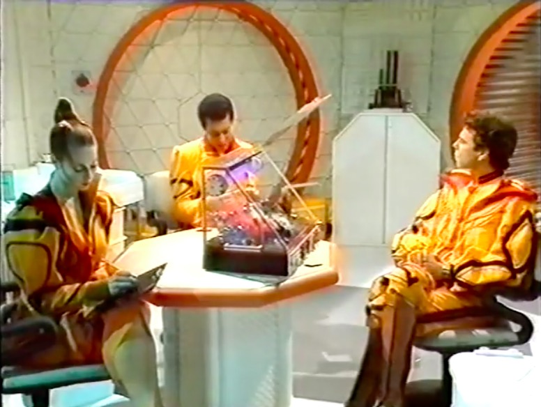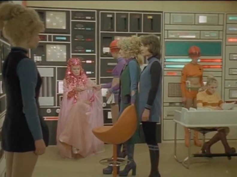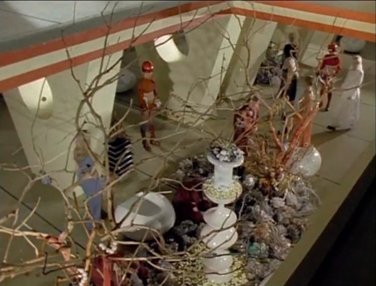 This series made good use of presumably custom-built mouldings, using a number of space-age designs that – to the best of my knowledge – first appeared in Doctor Who as part of the impressive setting occupied by the Time Lords in The Three Doctors (BBC, 1972-3).