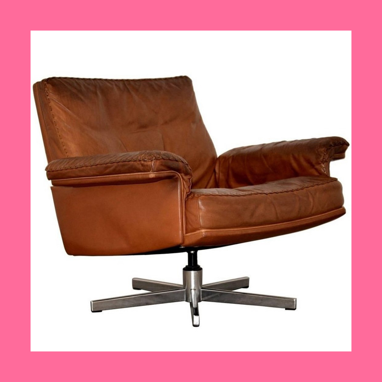 Cognac leather Swivel Office Chair