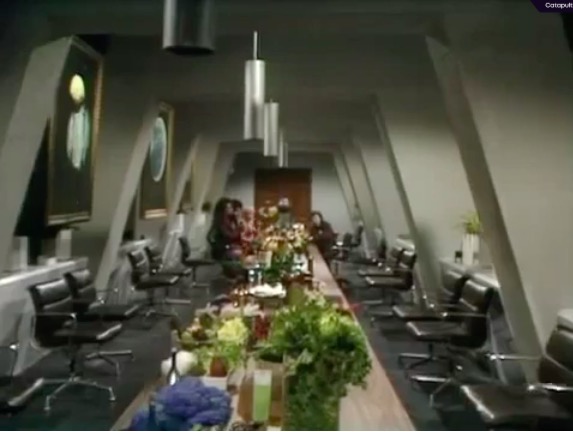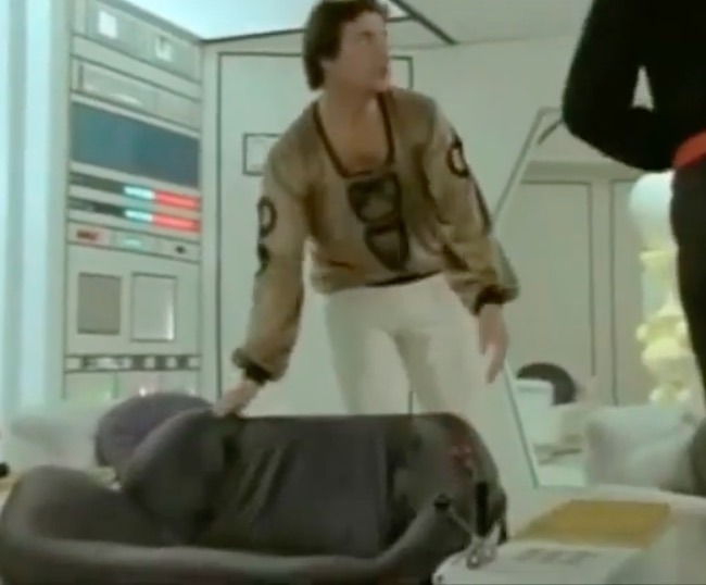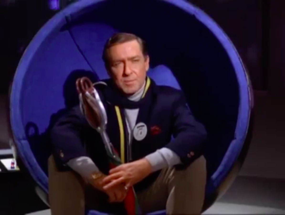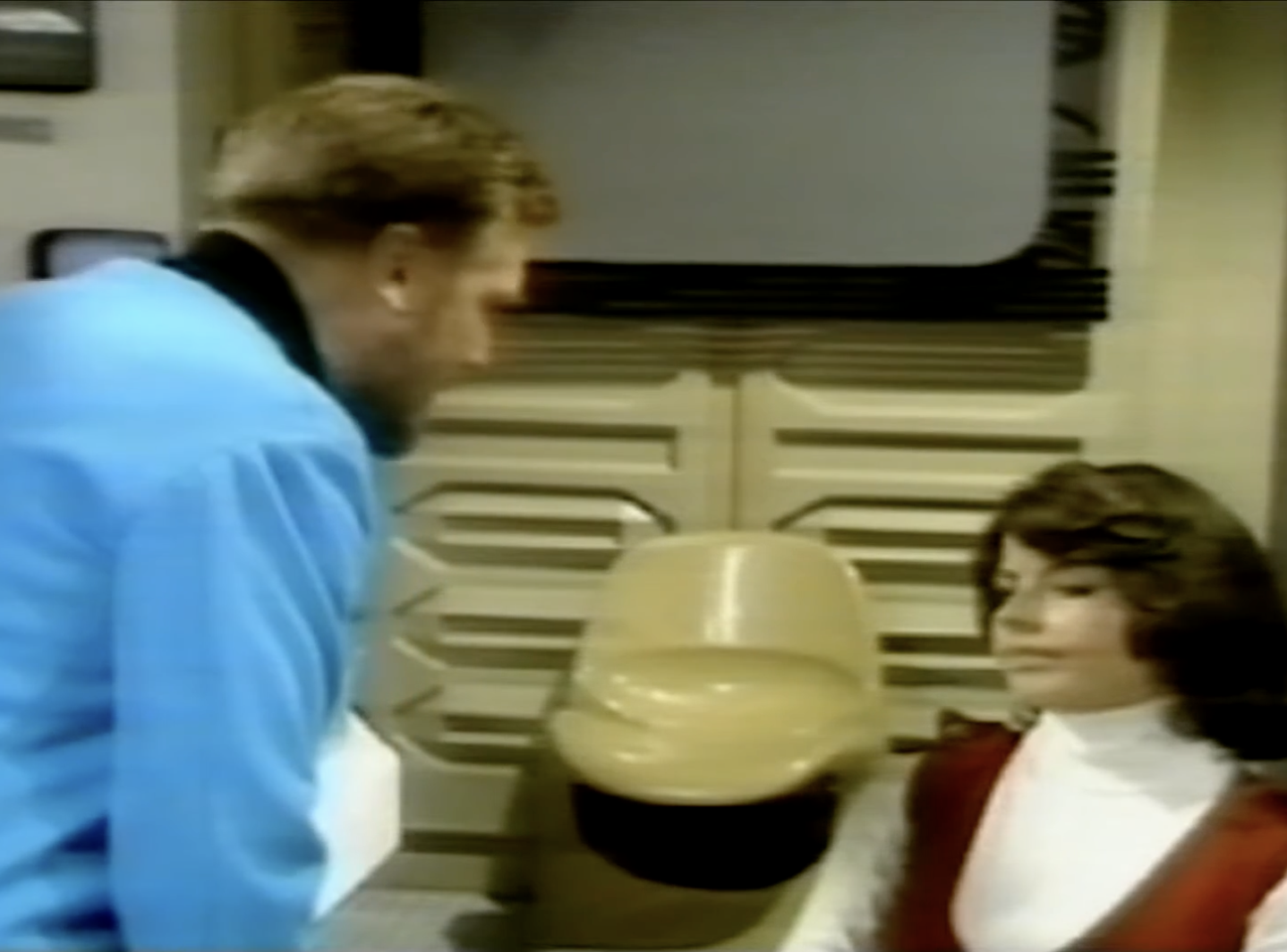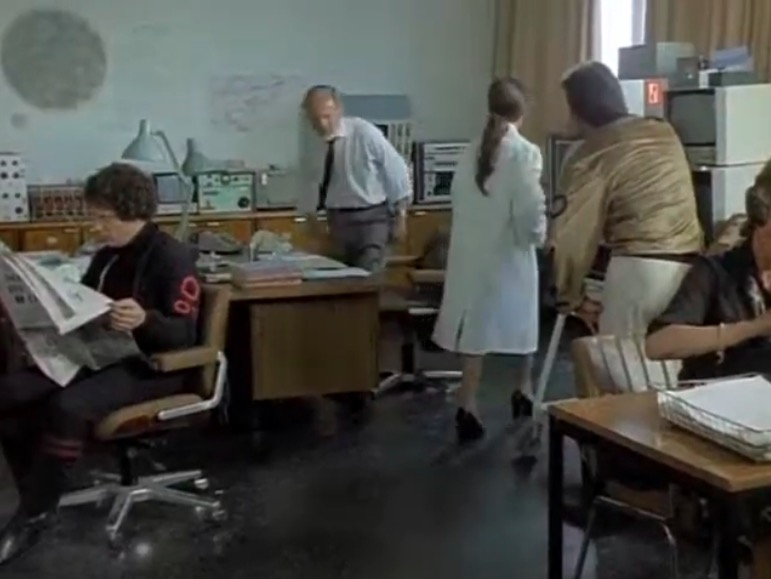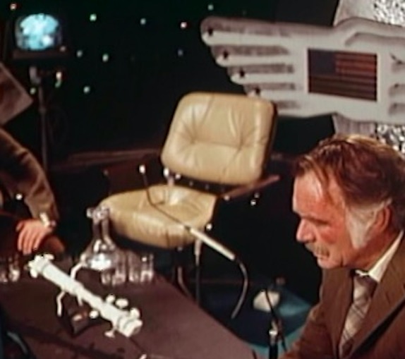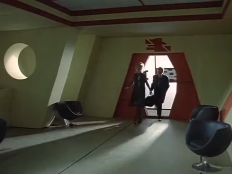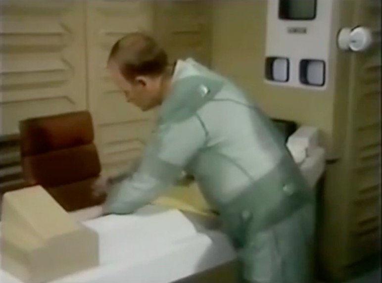 In the controller’s room, we see a chair that has popped up in everything from Sontaran spaceships to Titan-bound shuttles. This is the Alda Armchair, designed by Cesare Casati & Enzo Hybsch for Confort, Italy, 1966. This chair is interesting for two separate reasons. Firstly, it is a large lounge chair that swivels. Now, lots of lounge chairs swivel on a single leg; however, this, like the familiar Elda chair by Joe Columbo, swivels on a fibreglass base and offers a truly space-age aesthetic. Not a hint of chrome in sight.