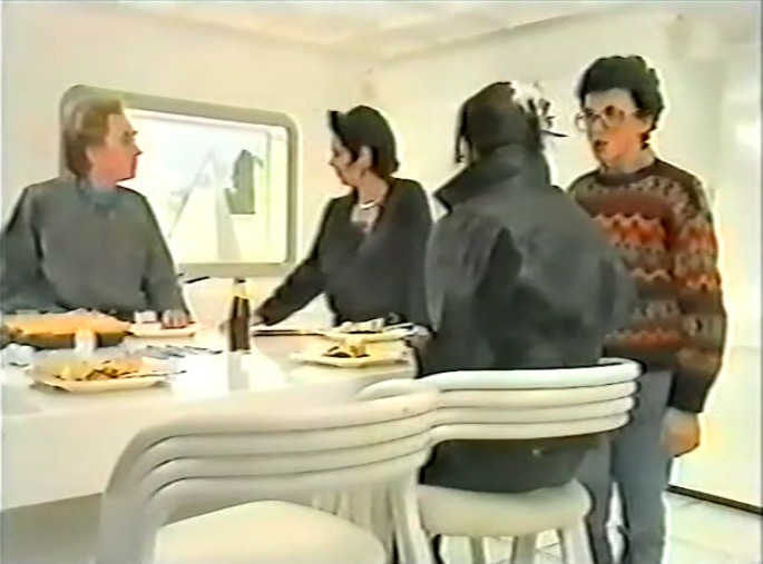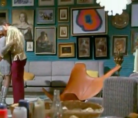 Fast forward towards the end of the decade, and BBC2 broadcasts a television play The Year of the Sex Olympics. This Nigel Kneale play was transmitted in mid-1968 and captures a new conceptual future through its interesting use of furniture. Historical artifacts feature, however, it’s the space-age designs that stand out.