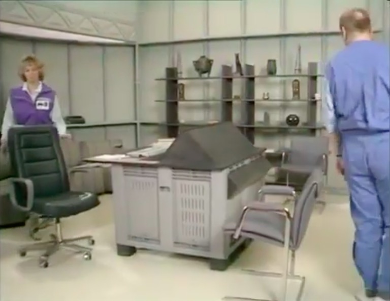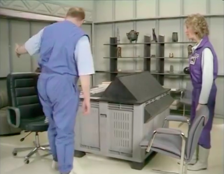 By the 1980s there was change afoot. By the end of the decade, it felt that a broader shift in broadcasting towards a business-minded culture, resulted in expensive space-age drama being largely sidelined. Therefore, it’s apt that many of the chairs used in the 1980s belong to a previous era, largely harking back to the 1960s and 1970s. In terms of set design, Star Cops feels a little more in the moment than some of its contemporaries, yet it lacks much in the way of furniture that matches the postmodernist thinking of the era. However, it does feature some kneeling chairs, which is a departure from the norm, and is in keeping with the increasing move towards ergonomic designs.