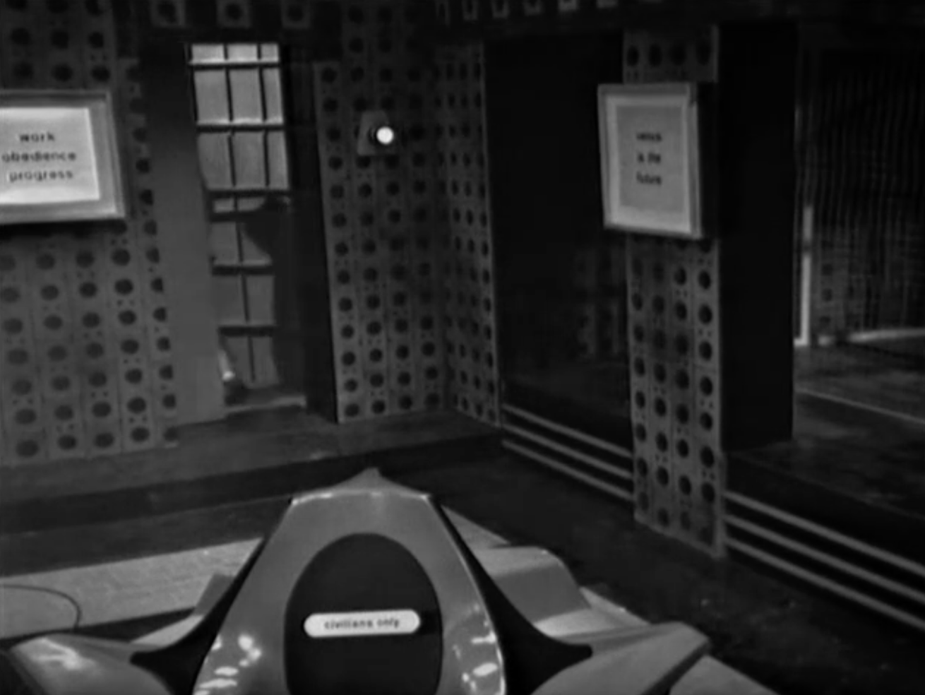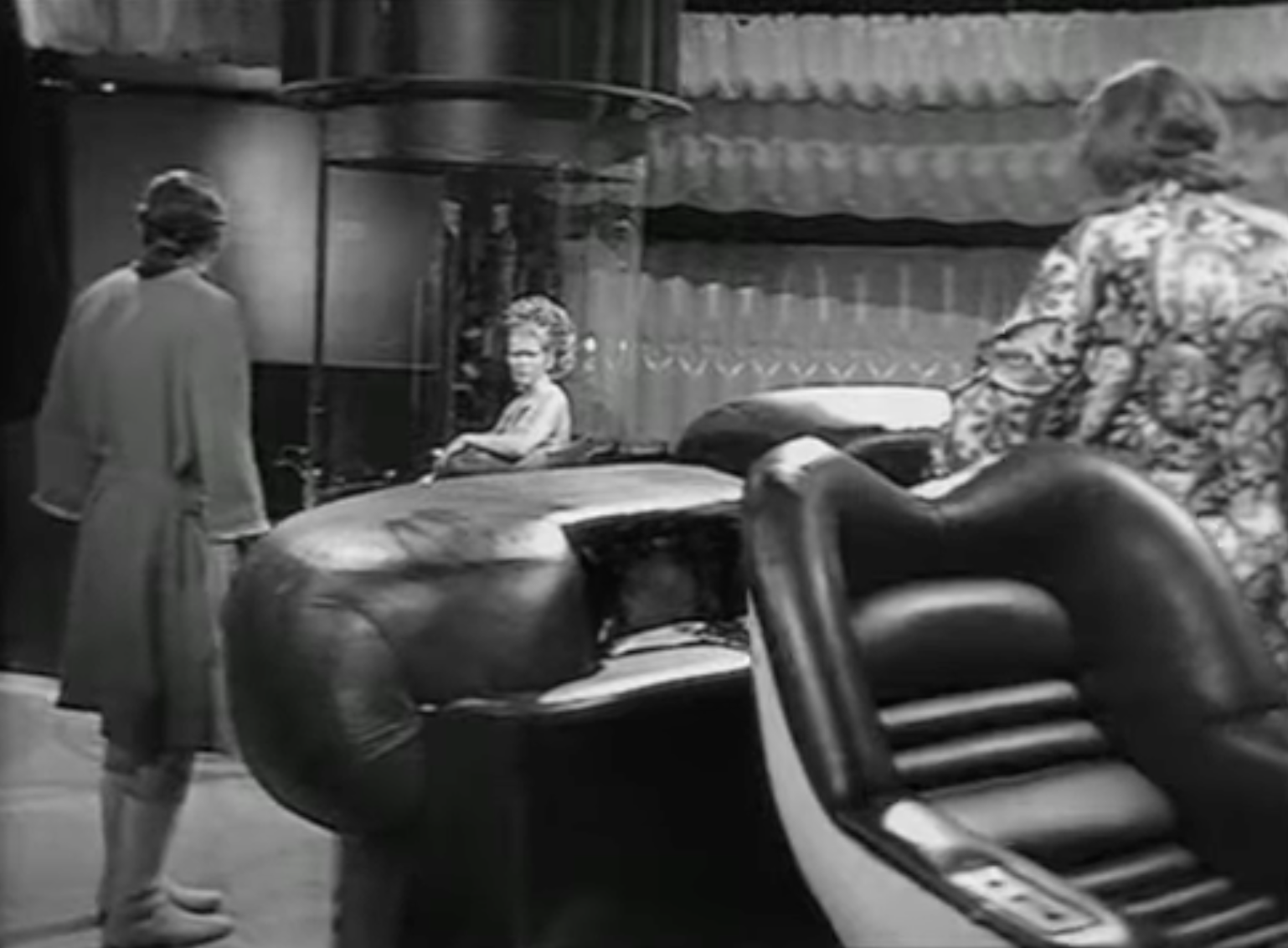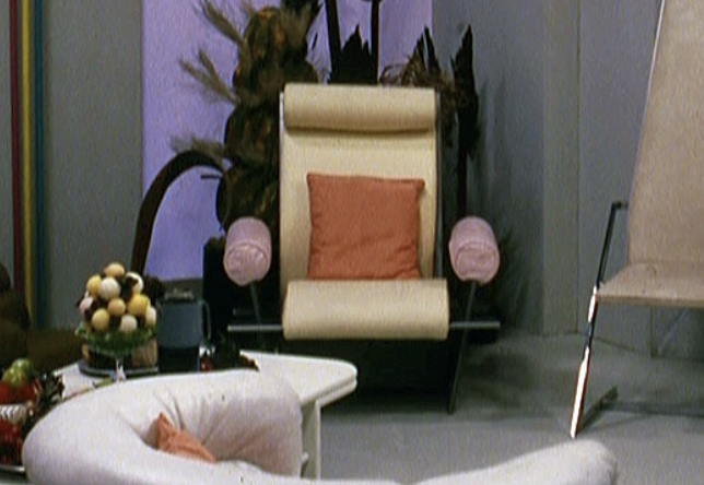 The production designer for both productions was Roger Liminton. While it is unclear whether we was responsible for the design of the chairs, he was perhaps inadvertently responsible for the archetypal white space-age furniture used by the BBC well into the 1980s. The seat would appear again frequently in Doctor Who and Blake’s 7, with the high-backed chair notably used as Servalan’s chair-of-command in series B.