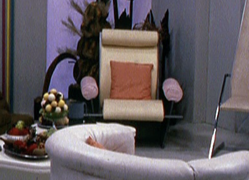 It is interesting to note that the furniture in question was not only designed for screen, (as opposed to being commercially available) but also crudely manufactured. A close inspection of the chair reveals it is poorly cut at the base, had imperfections on the inside, and was constructed in a crude, almost flimsy manner that wouldn’t compare well to products such as Casilino by Andexander Begge, that were widely available on the market.