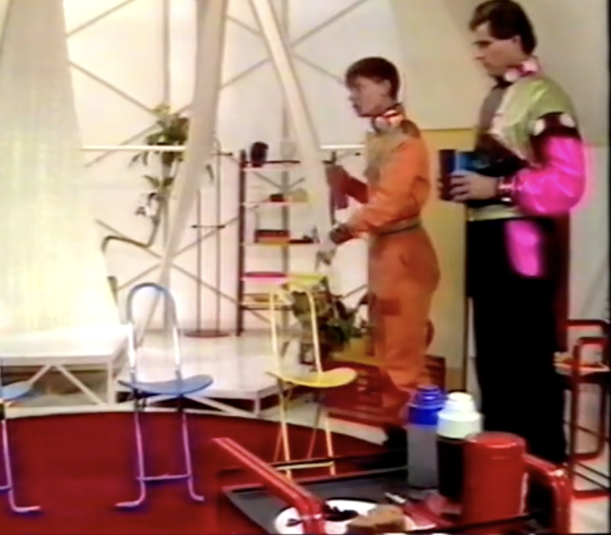 The playful postmodernist designs made famous by the Memphis design group are referenced in Doctor Who. In the 1985 serial ‘Timelash’, we see an unidentified chair that is big on colour and shape, replacing the chrome of old.