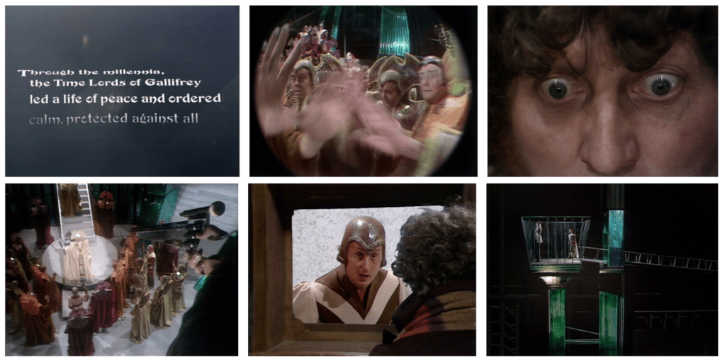 Part three of the four-part serial—‘The Deadly Assassin’—transmitted in November 1976—was a remarkable innovation and a departure from the familiar characteristics of Doctor Who. The eponymous Doctor fights for his life without an established secondary character at his side, and within an illusory environment containing an array of arresting images and sequences shot on location using film, rather than in the studio on videotape.