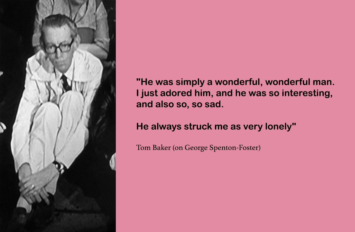 What lore there is surrounding Spenton-Foster, tends to be painted with broad brush strokes, centred as much on his character as his professional work. “A lovely, camp old thing” (Tom Baker), “...camp as a row of tents, and very funny” (Paul Seed), “...a bit like a stick insect” (Wanda Ventham), an “old school” BBC staff director, (Judith Smith), “a very, very experienced director, and very thorough... He gave me a lot of help” (Mary Tamm), “He was a flatterer was George“, “Very popular with the cast and very helpful all the time. And much revered.” (Prentis Hancock.) Lots of affectionate recollections, then. On the flip side, there are also some accounts of actors being seen as puppets or a dislike of certain individuals.