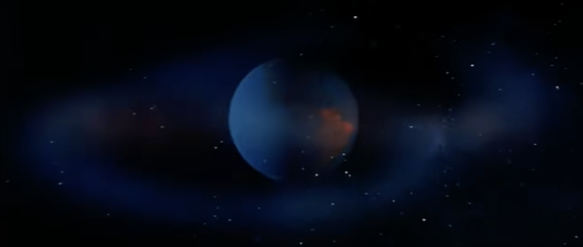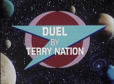 For ‘Duel’, Douglas Camfield uses a similar cinematic convention, with the title sequence fading to black, and after a significant amount of time, the planet eventually emerging from the darkness.