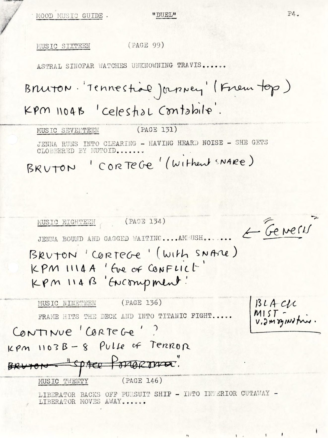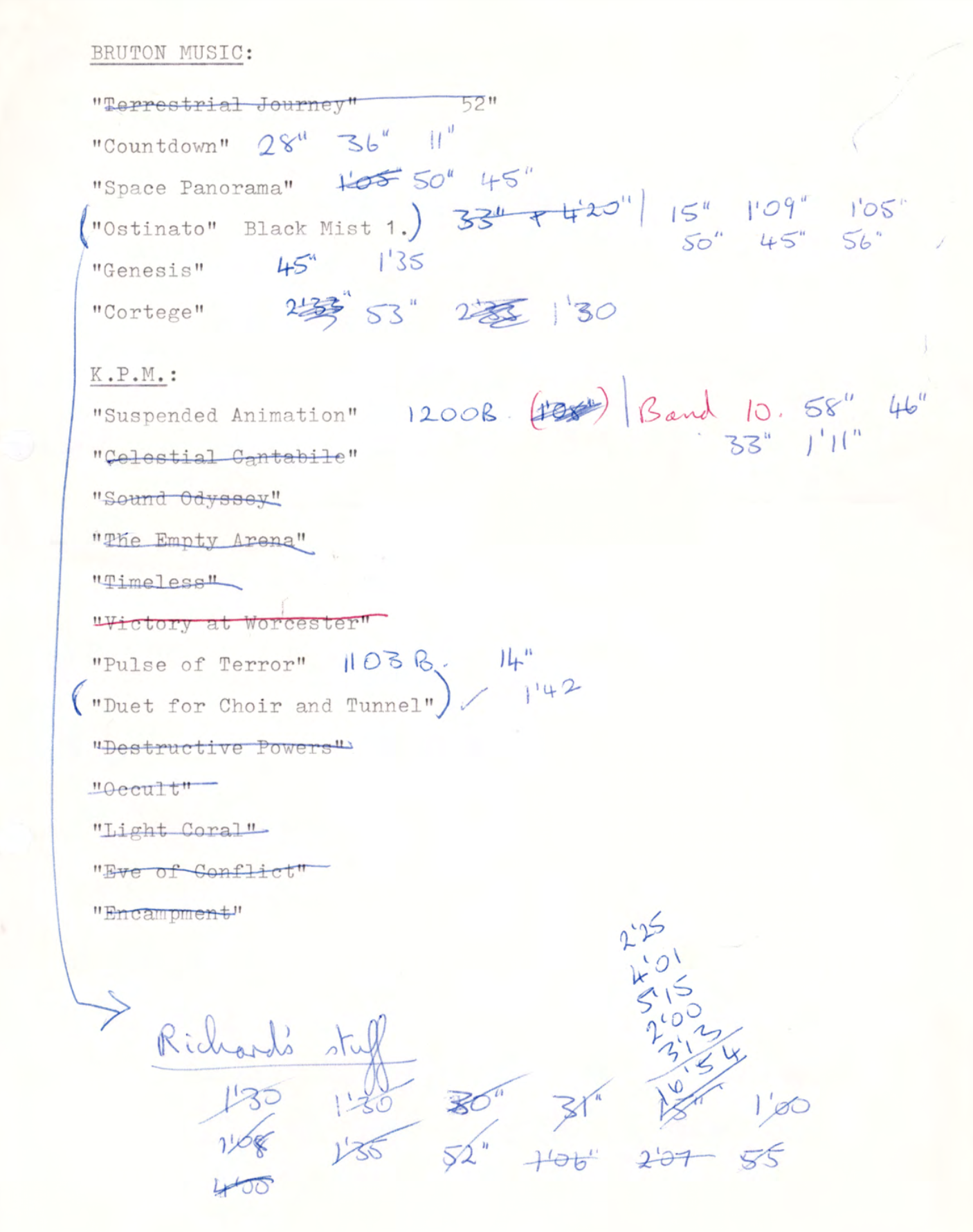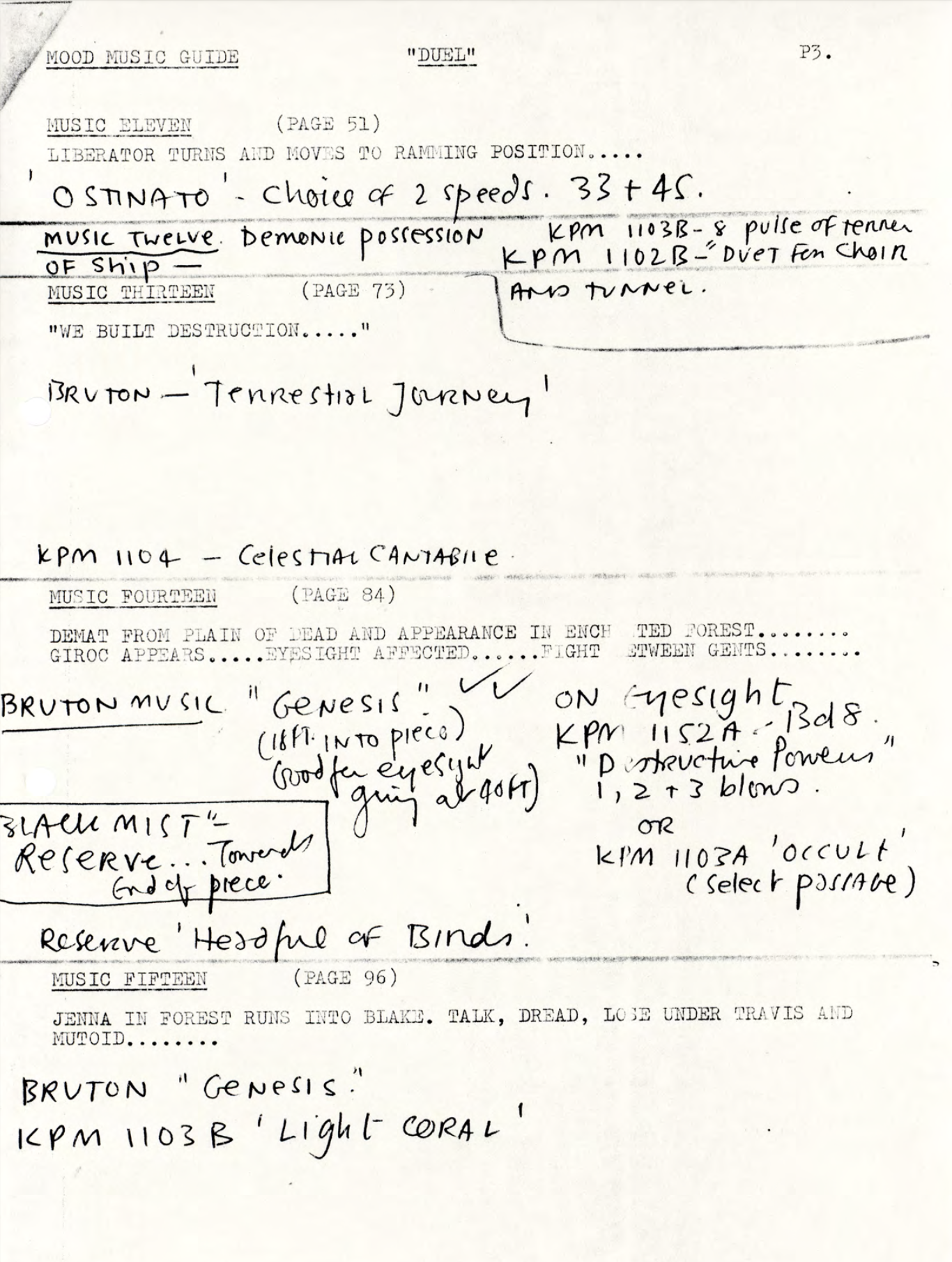 To illustrate this, here is a video that takes the details from the production paperwork and lines up the reserve or rejected cues to the scenes they accompany.