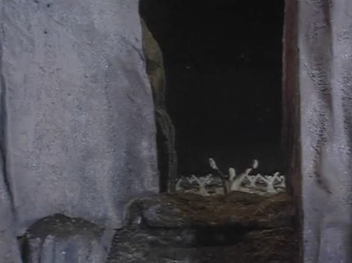 Let’s start with Gan. Poor Gan. He never has much to do. While Terry Nation writes the character into the scenes on the planet, it is what Camfield does with him that is interesting.