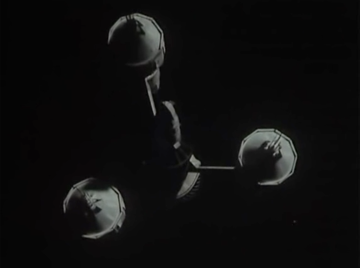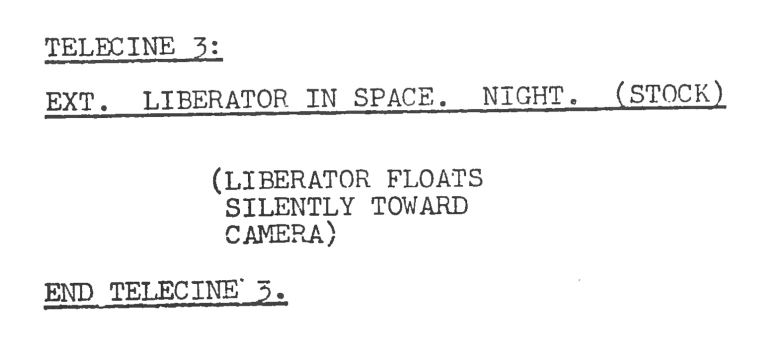 The first thing to notice is that Camfield has an eye on the current or contemporary. The 1978 Bruton Music LP ‘Terrestrial Journey’ includes a track by Alan Hawkshaw called ‘Space-Panorama‘, which is described as ‘Suspended beauty‘ – so a fairly straightforward choice it would appear, when accompanying The Liberator gliding through space. The fact that the scene is edited to fit the tempo of the musical score is another reason why the soundtrack feels a part of the scene, rather than an accompaniment. It’s in the same mode as Stanley Kubrick uses sound design as an integral part of the narrative in ‘2001: A Space Odyssey.’