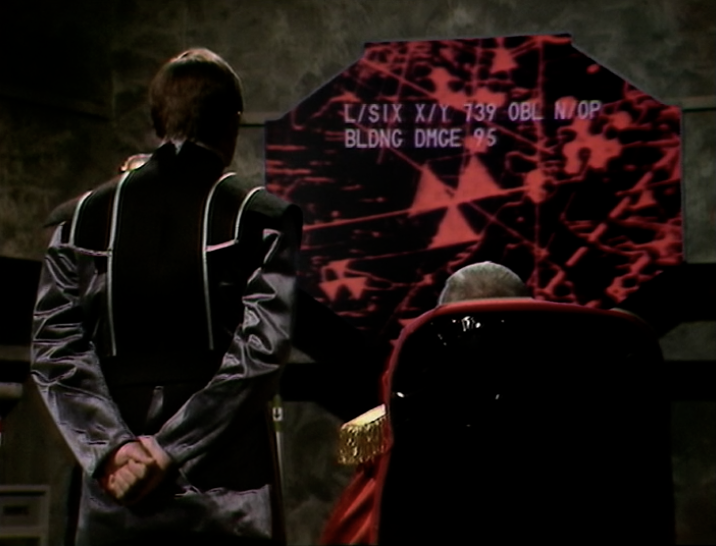 Of course, a scanner acting as the fourth wall isn’t an idea exclusive to ‘Duel’. A good example, a year or so later, is in Doctor Who, where The Marshall, Major Shapp, The Doctor and Romana all witness the war unfolding in ‘The Armageddon Factor’. It’s a key storytelling device in those early episodes. Although we get the odd glance of the screen itself, our attention is solely on the character’s reactions as they witness events not quite working out to their advantage.