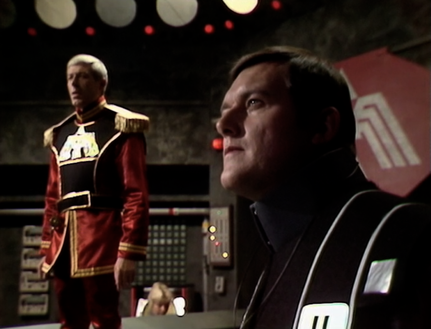 Camfield is often noted for how he conveys action. Often, it is his film work that is cited as an example. However, his handling of the camera and lighting adds a degree of conviction to the studio scenes of the Liberator being ‘WALLOPED’ by the Federation cruisers.