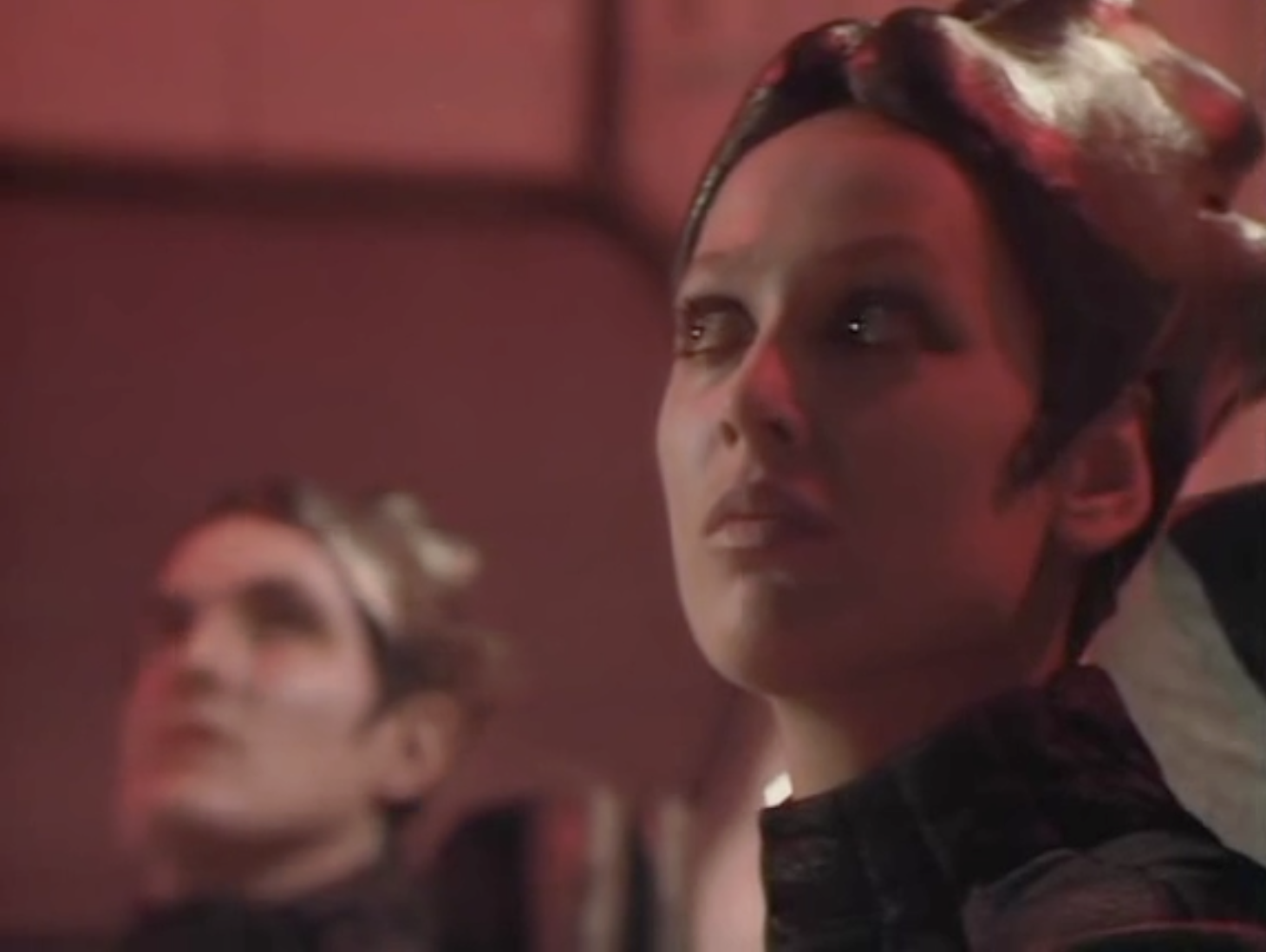 Connected to this is how depth of field is used cinematically, both on film and in the studio. The slow pull-focus shot from Cally to Jenna as Sinofar explains what is happening to them is a case in point. Their eyeline is searching for something they cannot actually see, but the gradual focusing suggests to the audience that we should listen as intently as the characters are.