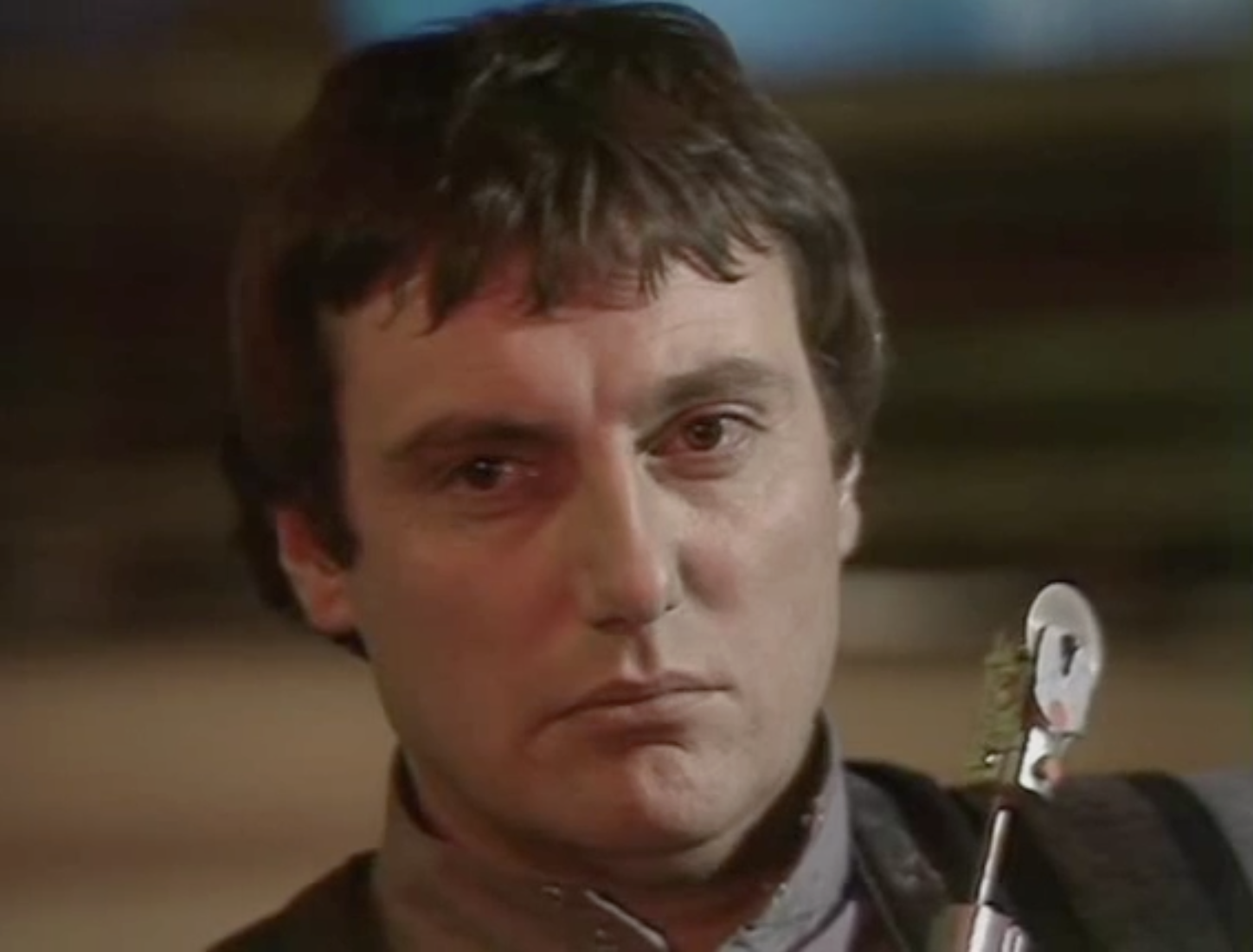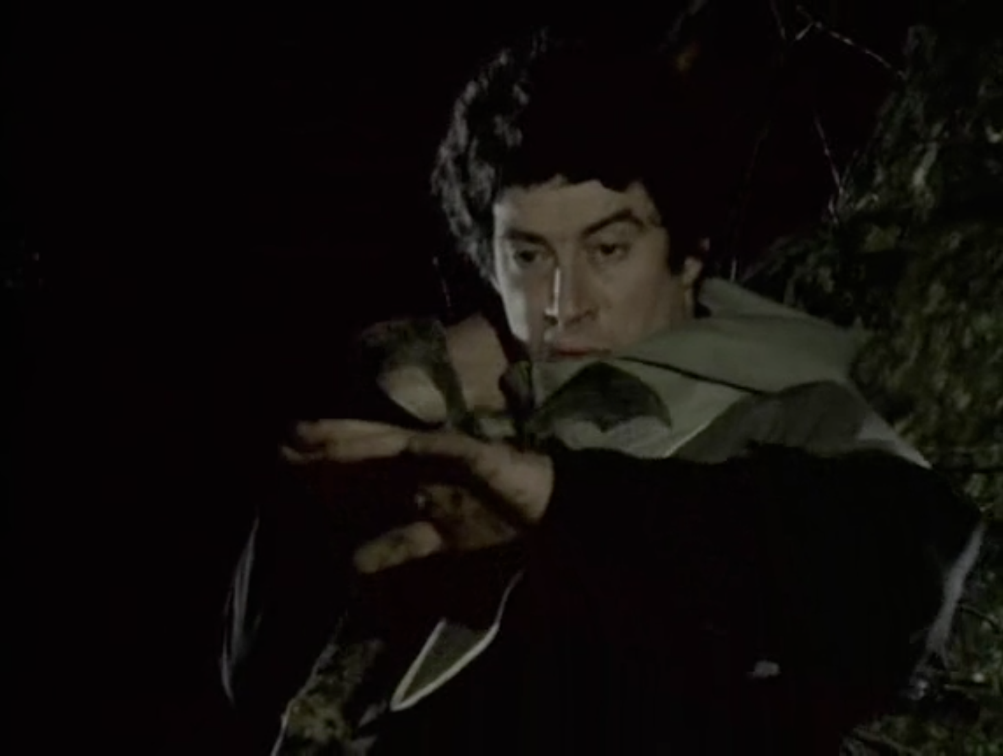 Even better is the close-up that David Jackson gets when Gan says, “Those aren’t ghosts!” It is one thing to look up at the sky, but to have the camera at a low angle, also looking upwards, brings out the dramatic intensity of Gan’s realisation. For an actor who rarely got good coverage from the scripts (even his death was out of focus) this might be his most effective close-up of them all. Camfield also elects to remove the following word, “Look!” from the script. It’s the right decision, leaving the three words to retain their impact.
