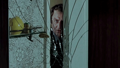 Firstly, we see the increasing urgency of the situation. The line of sight is conveyed through a reflection in the cracked mirror. This isn’t just Regan’s, it’s the audience’s too. Regan directly connects with us through the shattered mirror, meaning we’re right inside the scene, rather than looking from afar. Immediately after, Regan moves into a profile shot – shifting the scene, or should I say sight, from the confrontational to the tense.
