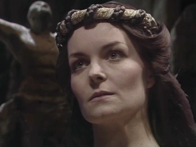 The second example is Jenna. Sally Knyvette’s performance is miles apart from any other episode. She can expand her portrayal beyond the cynical space pirate, towards a character of deep suspicion and mistrust, but also with glimpses of affection and trust towards Blake. She delivers her lines in the woodland with a breathy, hushed tone that captures the survival instincts required in this particular duel.