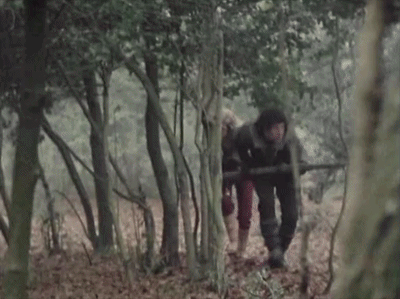 The relationship between foreground and background is not just aesthetically pleasing; it heightens the drama. When I see the low-angle shot of Blake and Jenna just about clearing Travis’ falling trap, I’m reminded of the moment where Michael finds the corpse during ‘The Nightmare Man’ (BBC, 1981) – both shots have added gravitas thanks to the foreground highlighting the urgency of Blake and Jenna, and the shock of Michael. The perspective is crucial – the low angle draws the audience right into the situation.