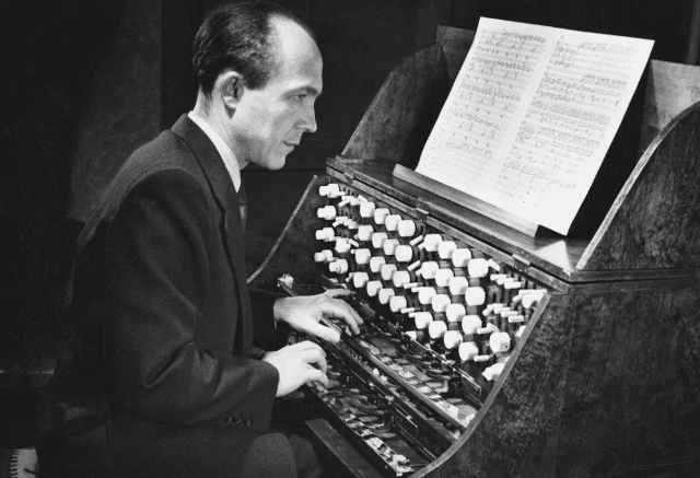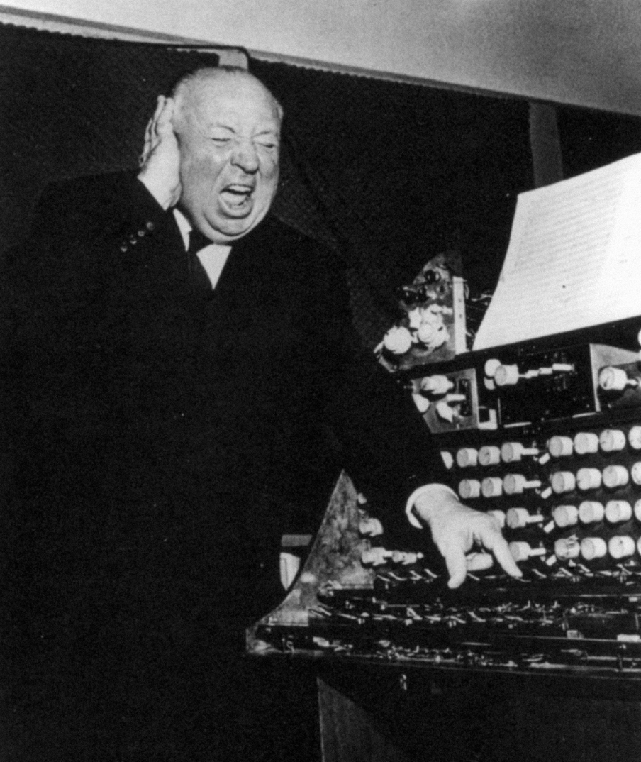 For me, the most interesting track is what accompanies the imminent commencement of battle – Ostinato, by Oskar Sala, from the EMI LP ‘Electronic Virtuosity’ (1970). This track uses a Trautonium – an electronic synth – developed in Berlin in the 1930s by Friedrich Trautwein. This instrument isn’t necessarily struck by hand in the same way as a piano. In fact, a finger can slide or rest along a wire. Contact with a rail underneath helps to control the pitch. The composer of ‘Ostinato’, Oskar Sala, was responsible for the screams of the birds in Alfred Hitchcock’s 1963 thriller ‘The Birds’. The Trautonium was the method used to achieve this, and Hitchcock was taken by the results, as you see in the photo below. 11