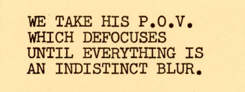 Here, the line of sight is all about detection, concentration, and alertness. Travis’ sight is directed at the scanner screen out of vision, slightly above the camera. The view is not of routine observation, but of predatory instinct: fixed, determined, hawk-like.