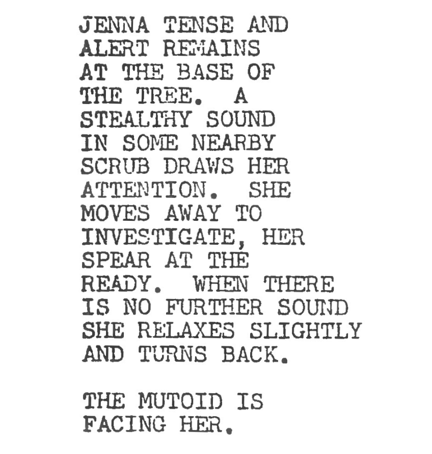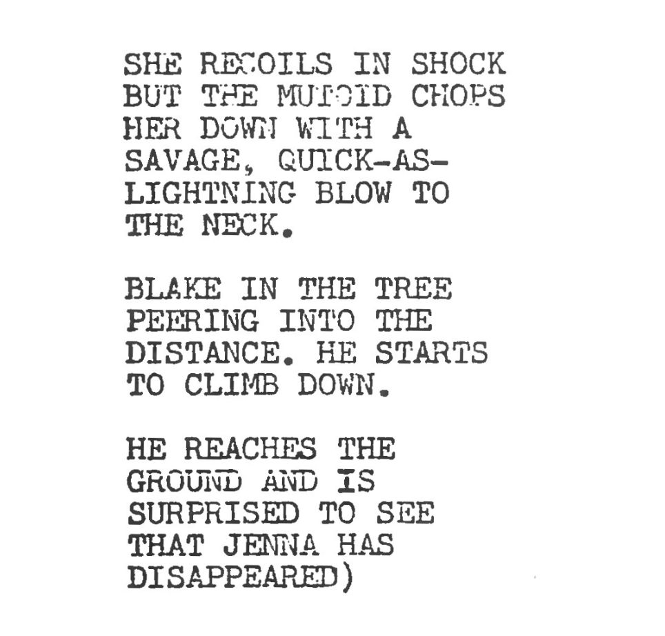 Or how the mutoid goes in for the kill, viewed from Jenna’s eyeline.