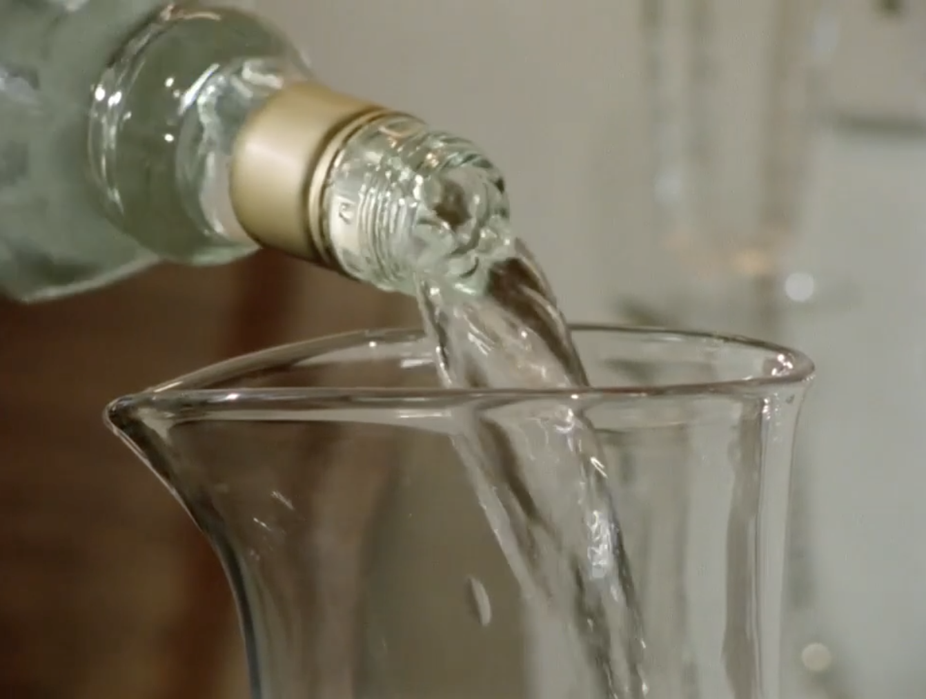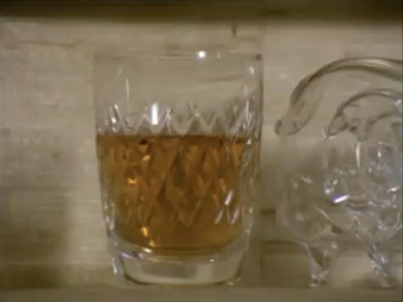 As mentioned, it’s not just the camera that creates the line of sight. The soundtrack is an almost ambient ‘musak’ – soft, luxurious, yet slightly sinister. The editing is sharp – the crystal glass full is revealed through a series of rapidly cut close-ups, each closer than before.