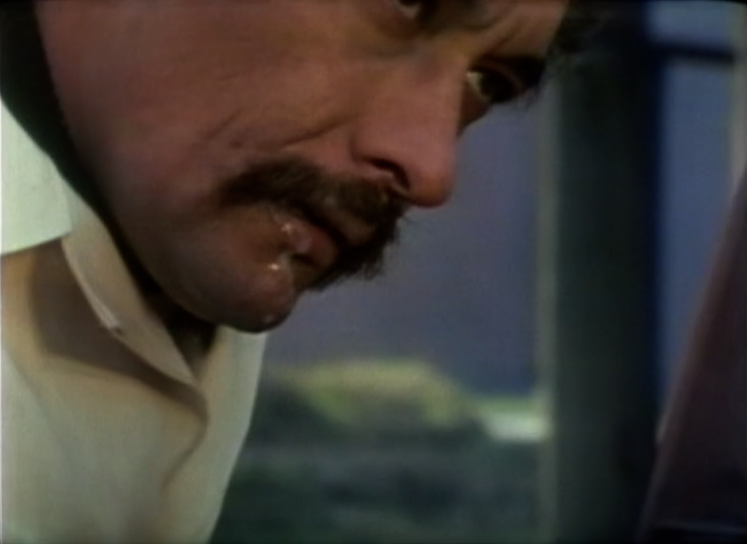 This is where we can see a difference in directorial styles. Whereas Michael Hayes uses some nice camera moves and composition that highlights Shapp’s suspicion in particular, Camfield keeps the camera still and goes straight into the eyes – or in Travis’ case, eye. Every time we return to him, the camera is a little closer, as he is laser-focused on his target. This is further proof that, with Camfield, the viewpoint is rarely static, even between shots.
