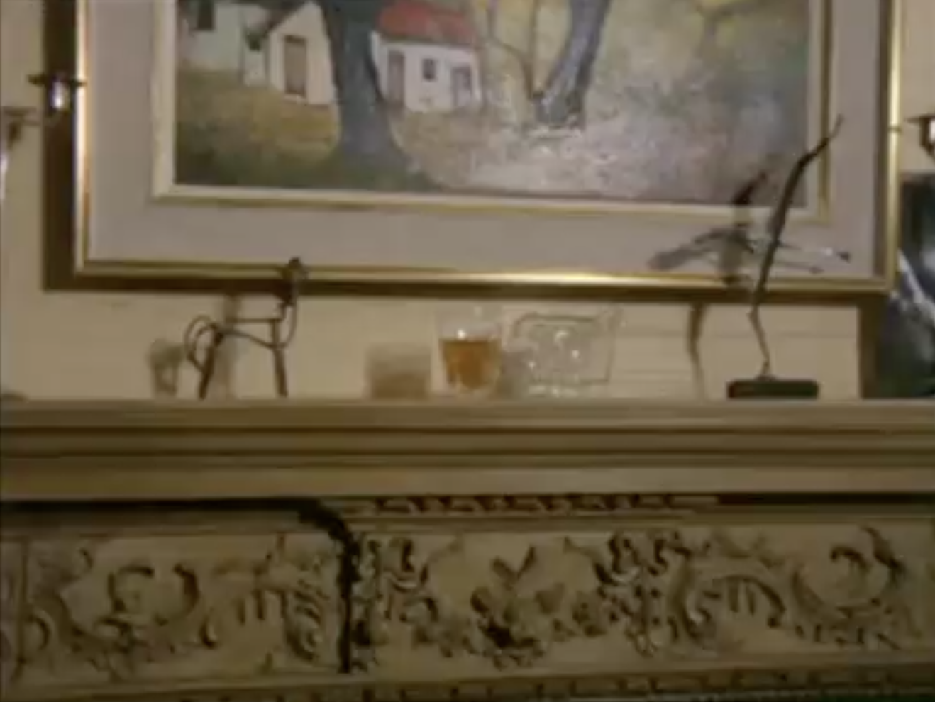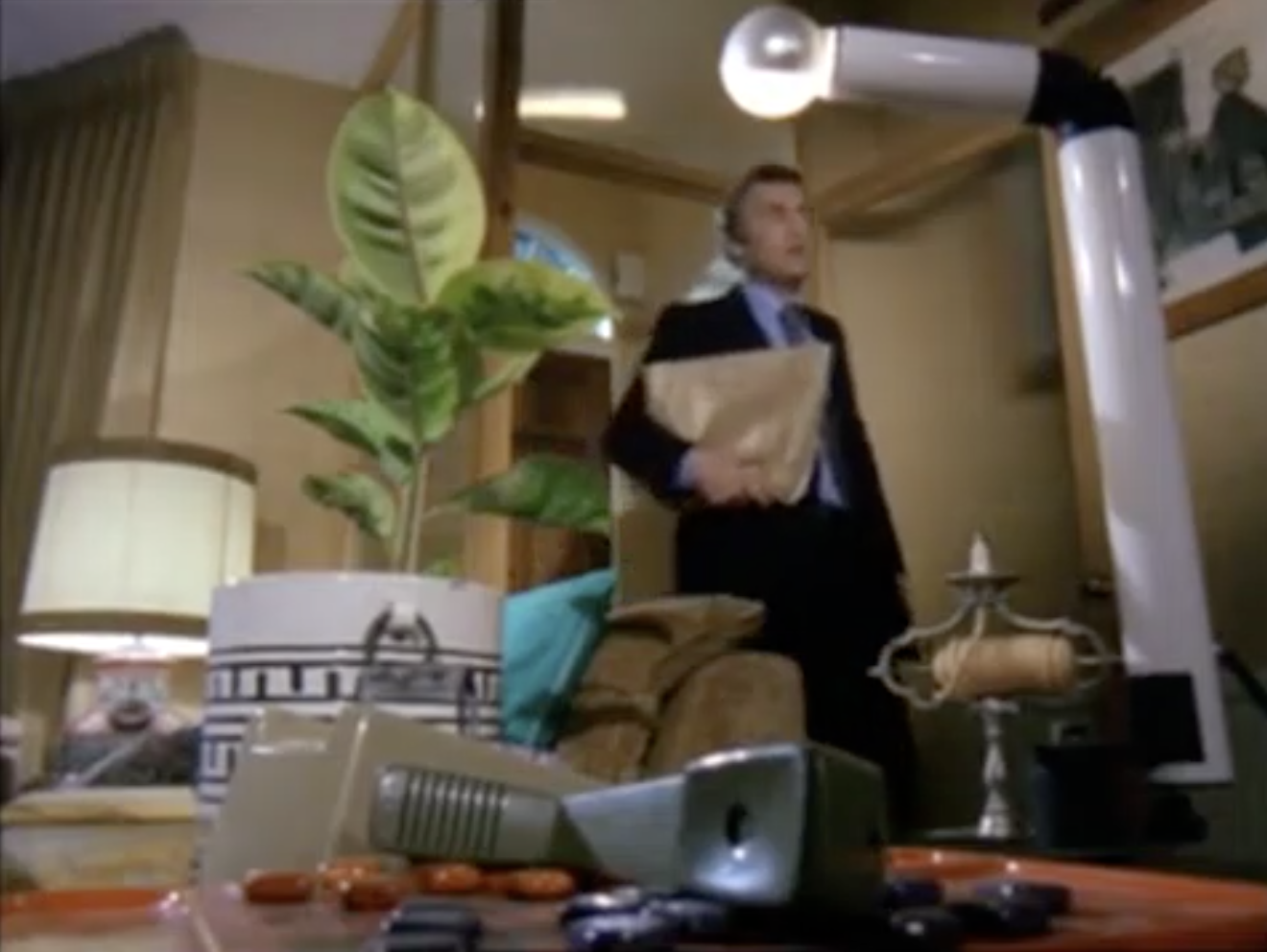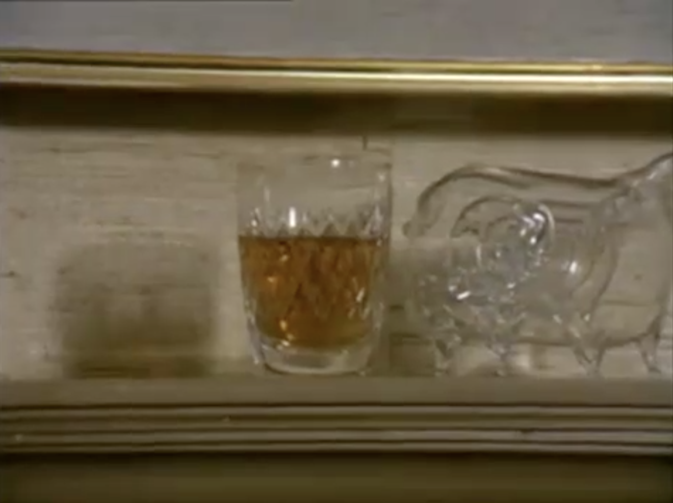 While waiting for Sandy Williams (journalist and burgeoning romantic interest), Regan makes a Bloody Mary. Camfield uses a series of close-ups to heighten the anticipation of their meeting. In fact, it predates every cookery show since the 2000s by showing the ingredients and preparation in appetising detail. Each shot is delicious, just like the composition of Regan when framed by table lamps and figurines.